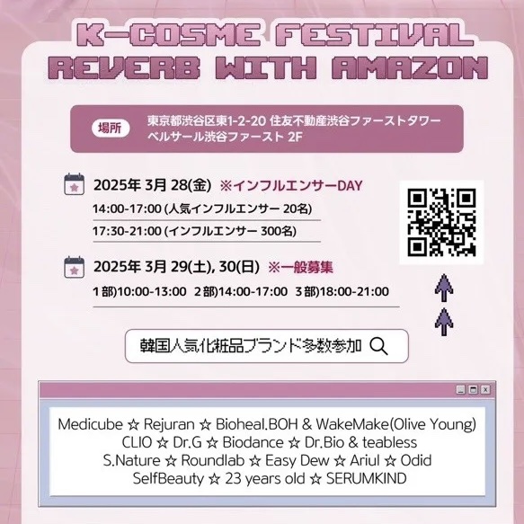 \ReverbK-CosmeFestivalWithAmazon🎉/..日本初進出のポップアップイベント「K-cosmeFestivalReverbWithAmazon」が渋谷で開催✨韓国の大手コスメブランド体験や韓国のトレンドコンテンツを楽...