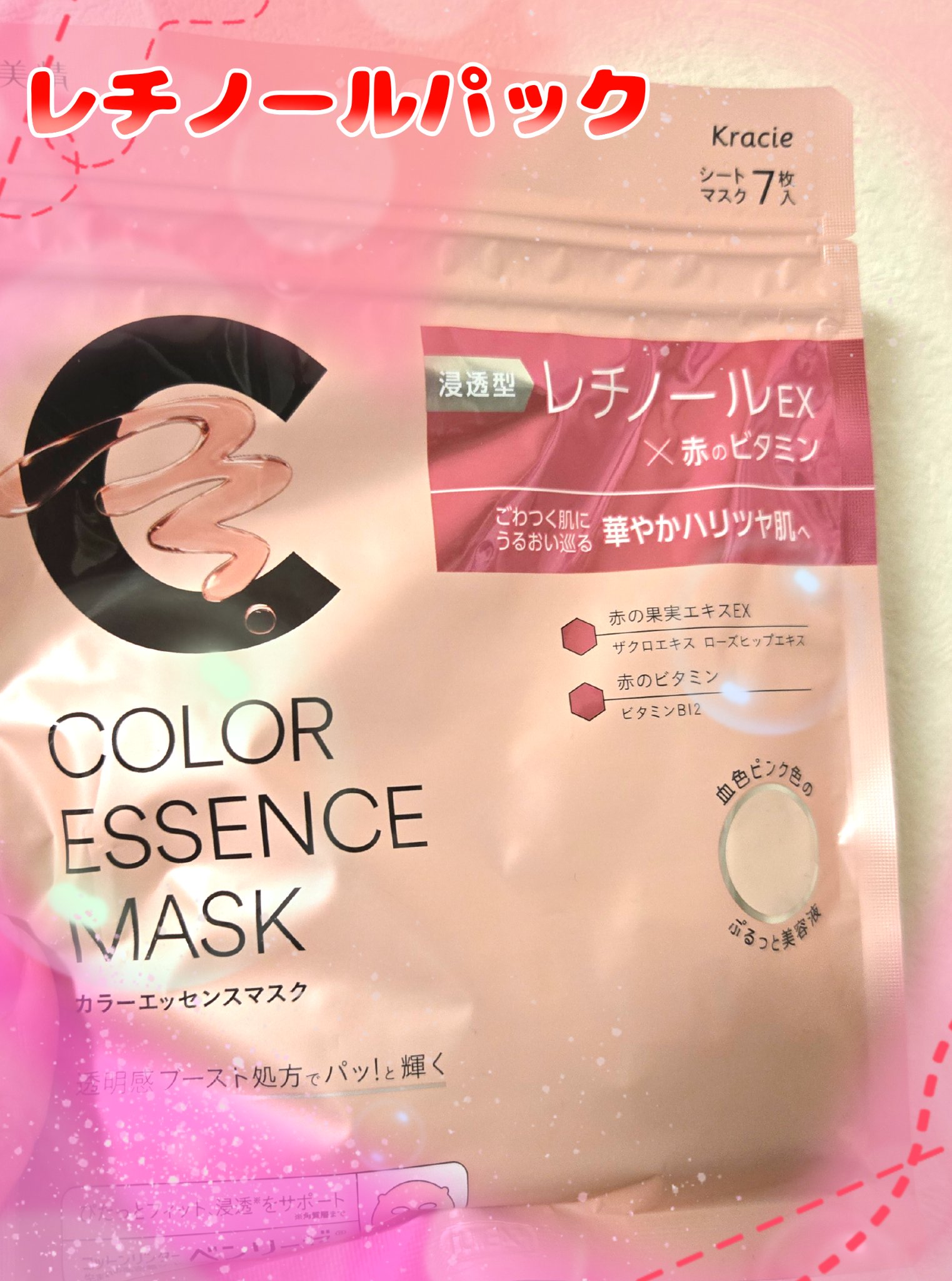 肌美精カラーエッセンスマスクピンク〈説明〉 ・シートマスク7枚入り・5〜10分間おいてからマスクをはがす〈感想〉シートマスクはピンク色です❣️美容液はたくさん入ってます。マスクの上部に二つ掴める部分がついていて、広げやすいのはありがたいです。...