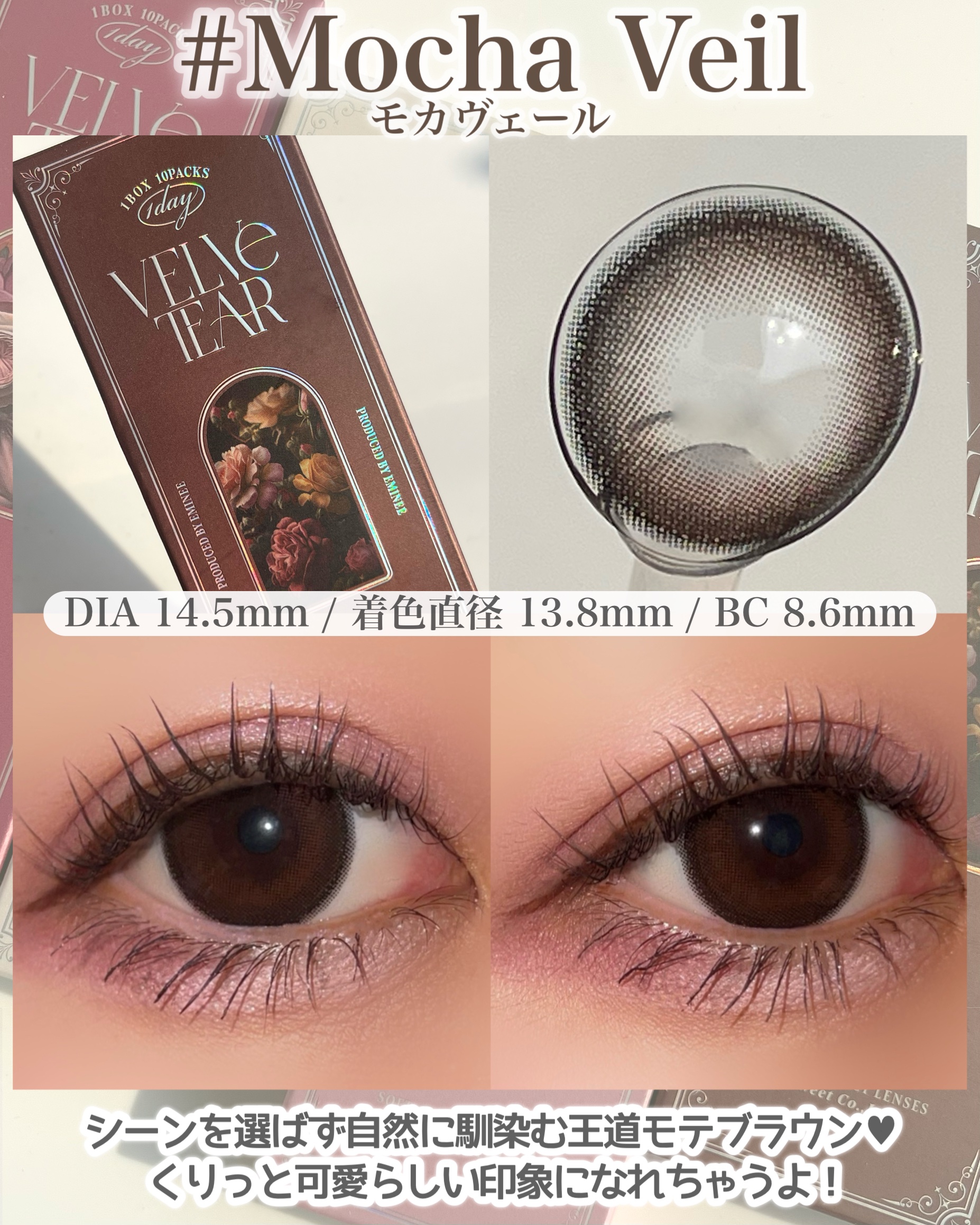 NEWブランド瞳格上げカラコンヴェルヴェティアミストグレージュ@velvetear_official@morecontact_official人気YouTuber、えみ姉がプロデュース&イメージモデル「ベルベット」のような美しい光沢✕「涙」の...