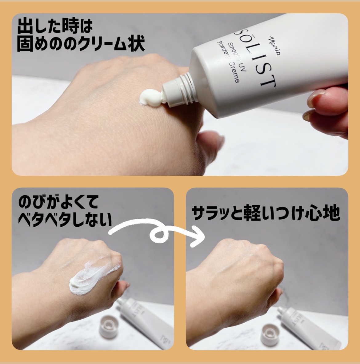 ᝰ✍︎꙳⋆ナリス ソリストスムースUV パウダリークリーム心地よさが続く新感覚日焼け止め✨クリームだけど、肌に塗るとパウダーのようなテクスチャーに!!皮脂吸着パウダーを配合で、気になる皮脂をしっかり吸収✨なんてすごい日焼け止め💕これ本当にすご...