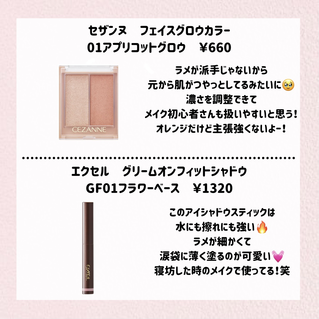 春色のコスメってほんとかわいいよね💗💗 プチプラ多めで金欠の私にもありがたいです🤧🙏 この前投稿してくれたプリ盛る方法参考にしたらいつもより盛れたの!ありがとう😳😳