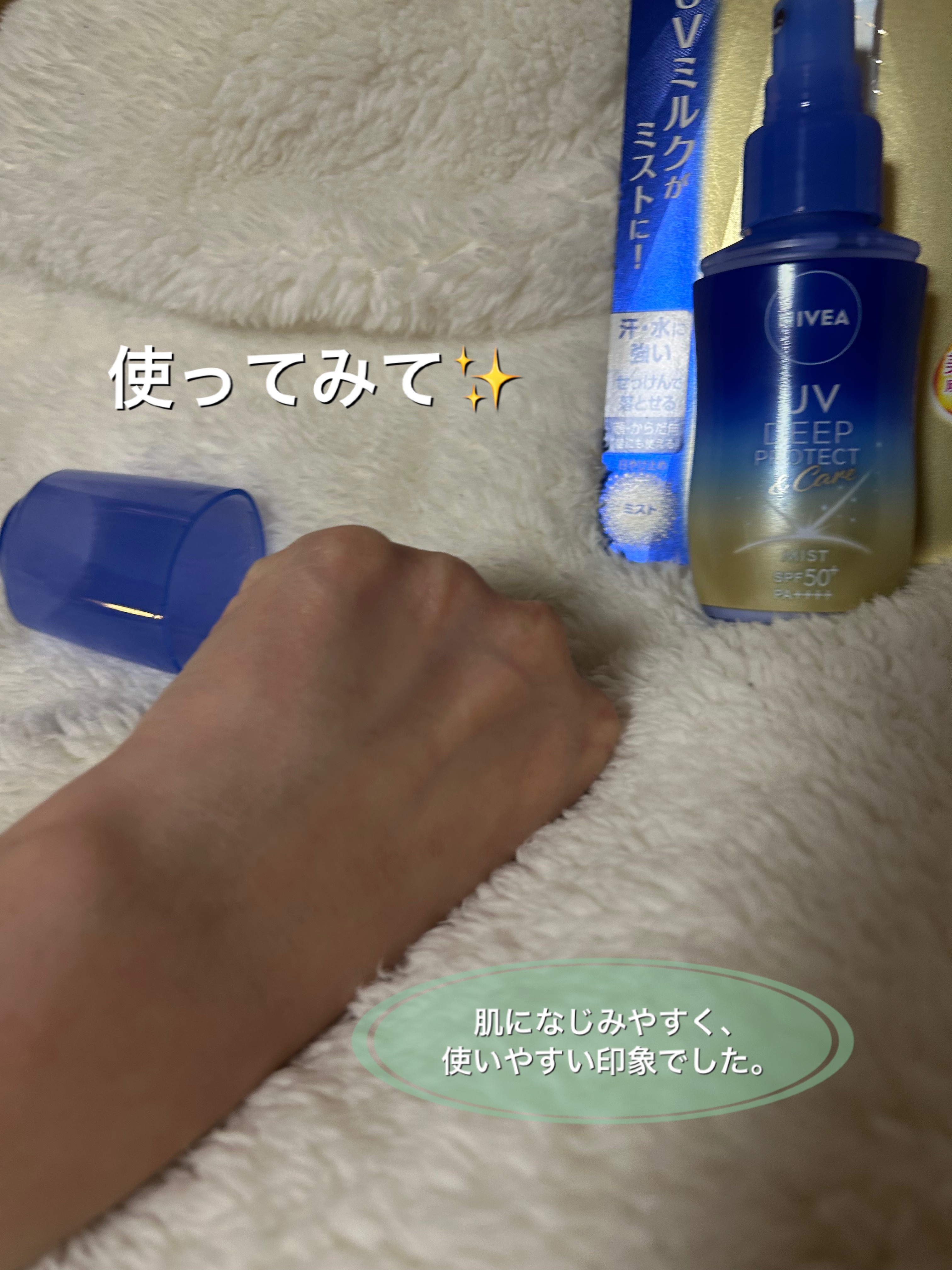 ニベア最強のUVカット効果(SPF50+/PA++++) と撥水効果 さらにミスト状なので塗り直しにも便利です🫶💕 塗り心地もさらさらしていてすぐにお肌に馴染むので、使い心地も良いです☺️