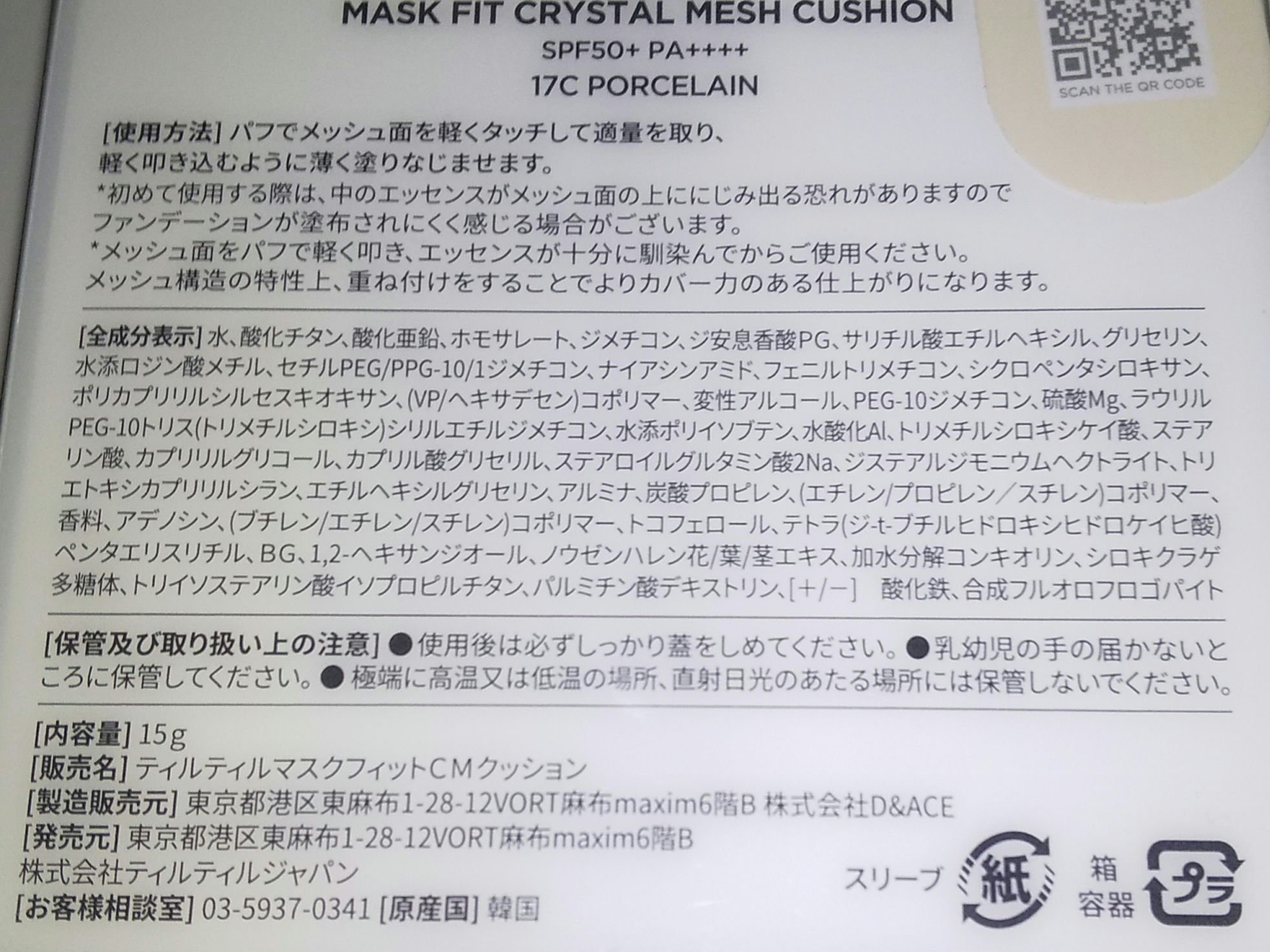 商品詳細情報TIRTIR(ティルティル) マスクフィット クリスタルメッシュクッション