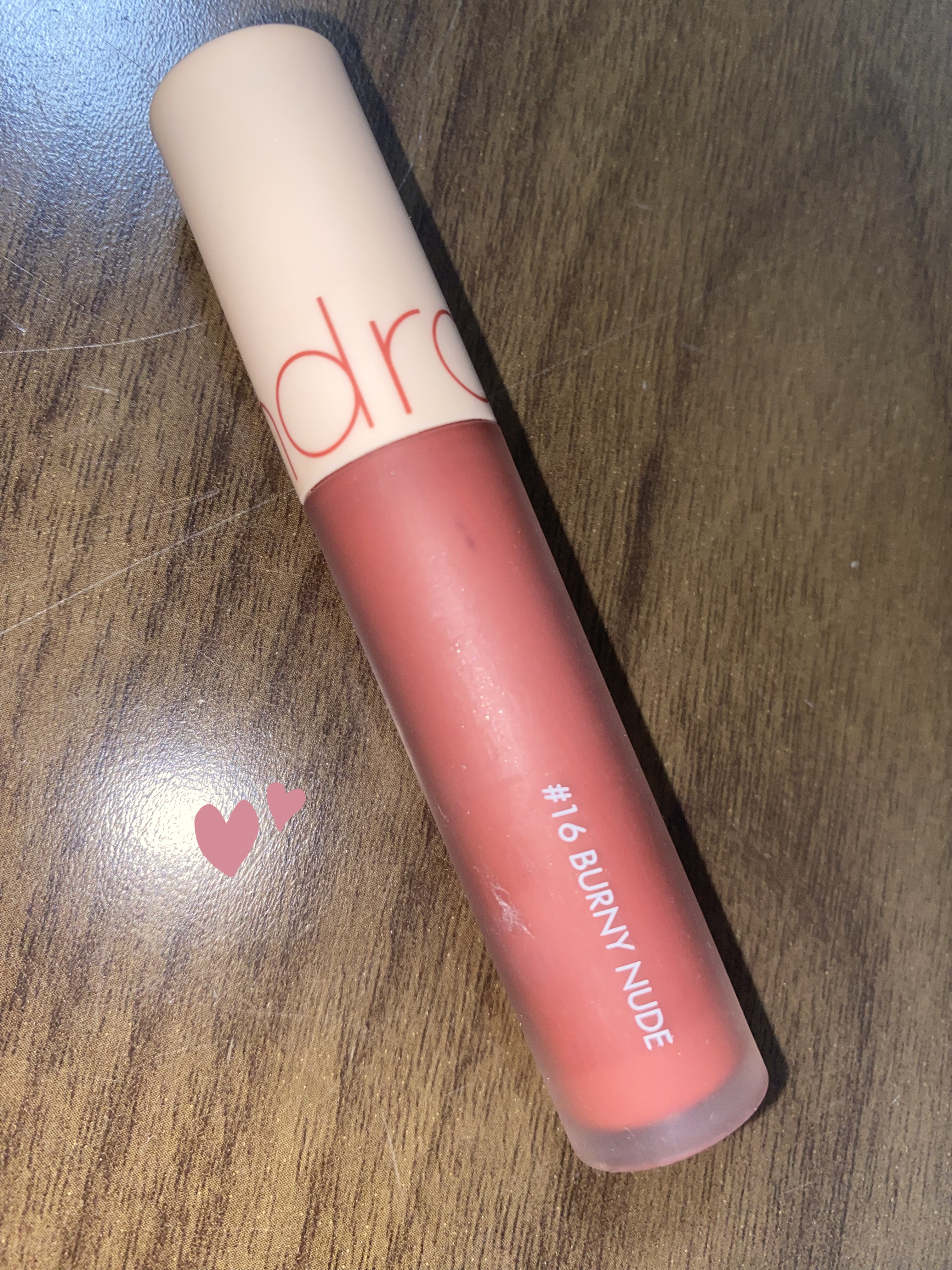 rom&ndのゼロベルベットティントは名前の通りティントなんですけど水っぽいティントというよりマットよりのティントでした! オーバーなリップにしたい時にゼロベルベットティントを真ん中に塗っておくとぽてっと感です。