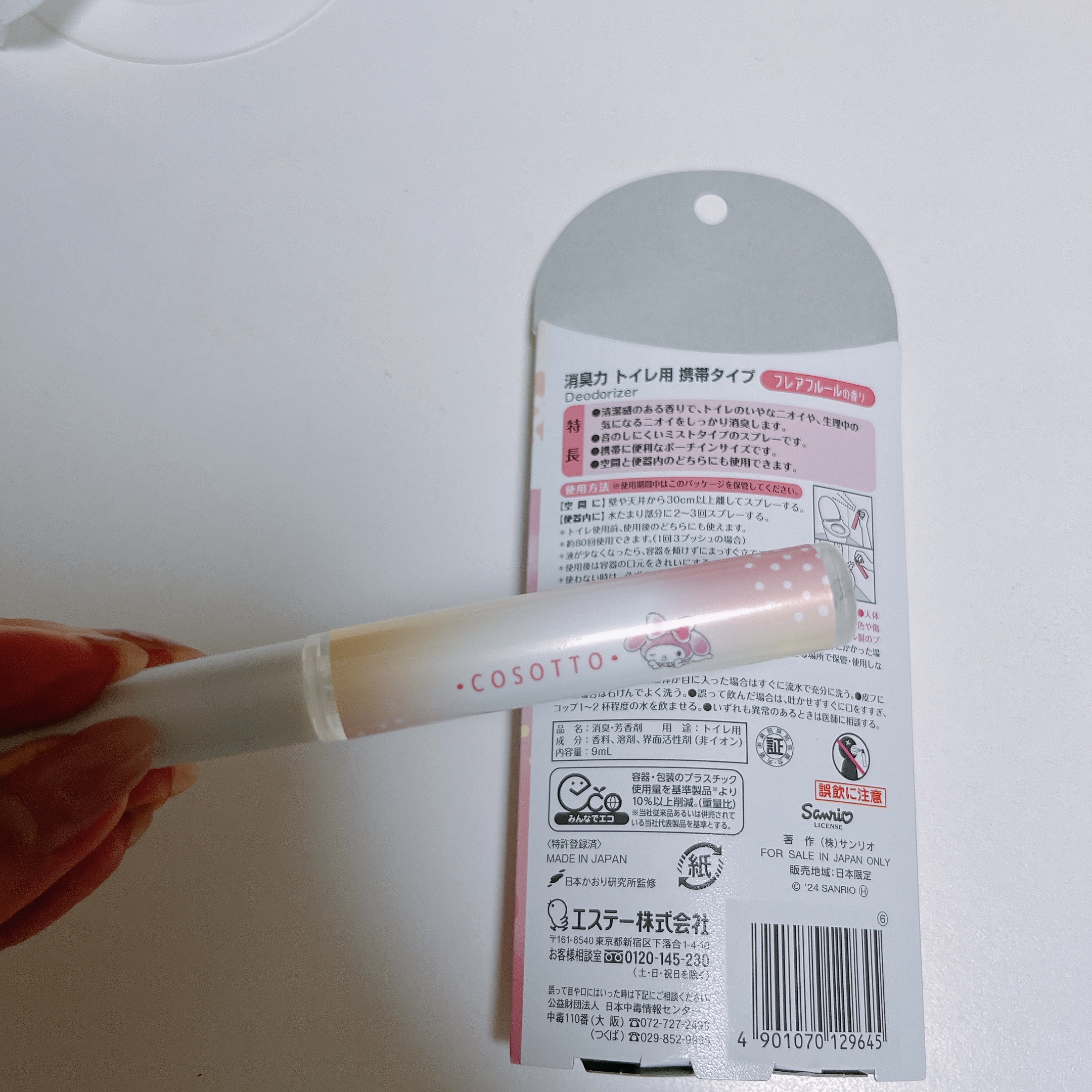 - 外出先のトイレで気になるにおいをこそっと消臭できるミストタイプのスプレー。「クロミ」、「マイメロディ」を起用したデザインに一新してリニューアル発売。
