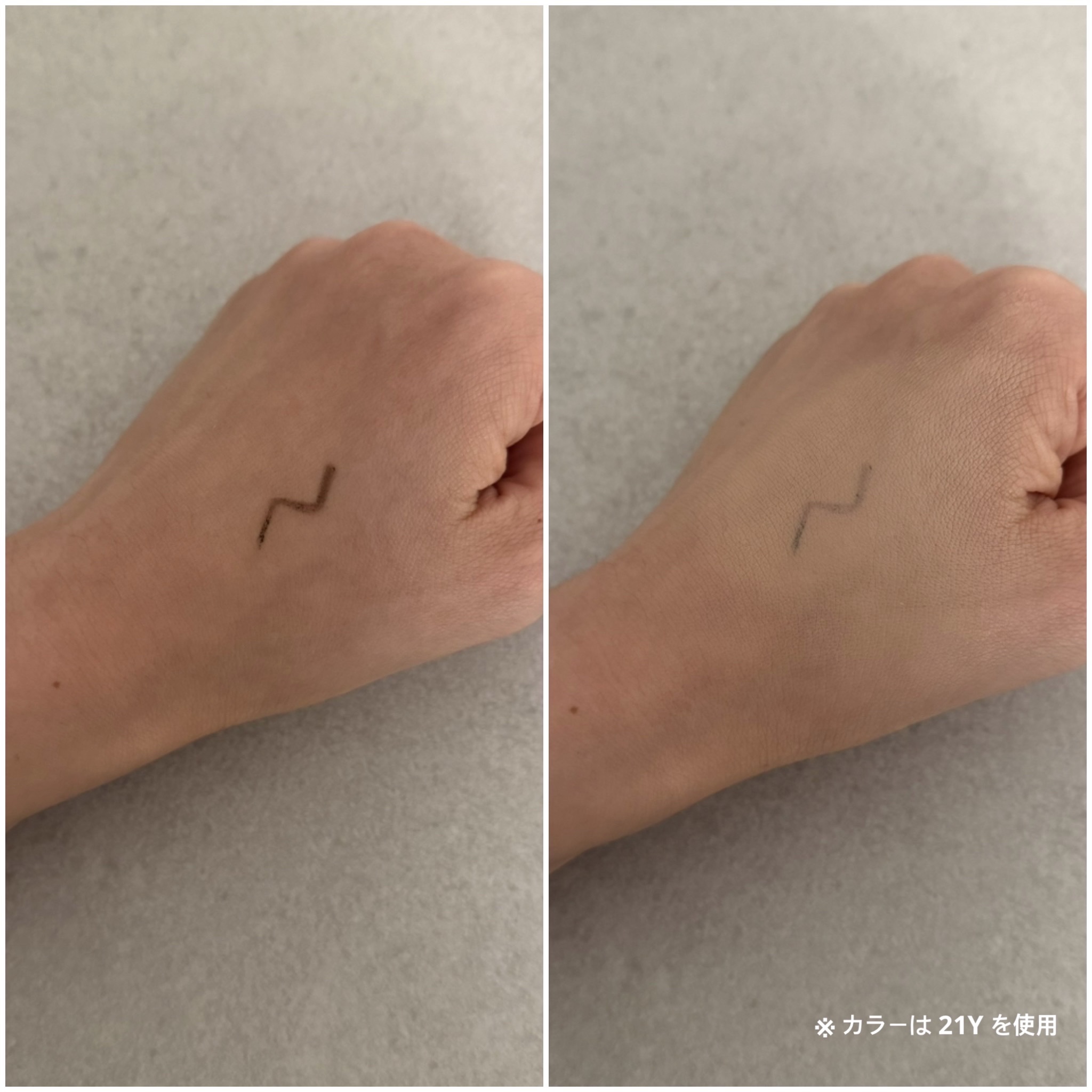 | 色味はピンク味を感じる肌色で、完全なベタっとしたマットではなくほのかなツヤ肌になります。 | 詳細を見る |