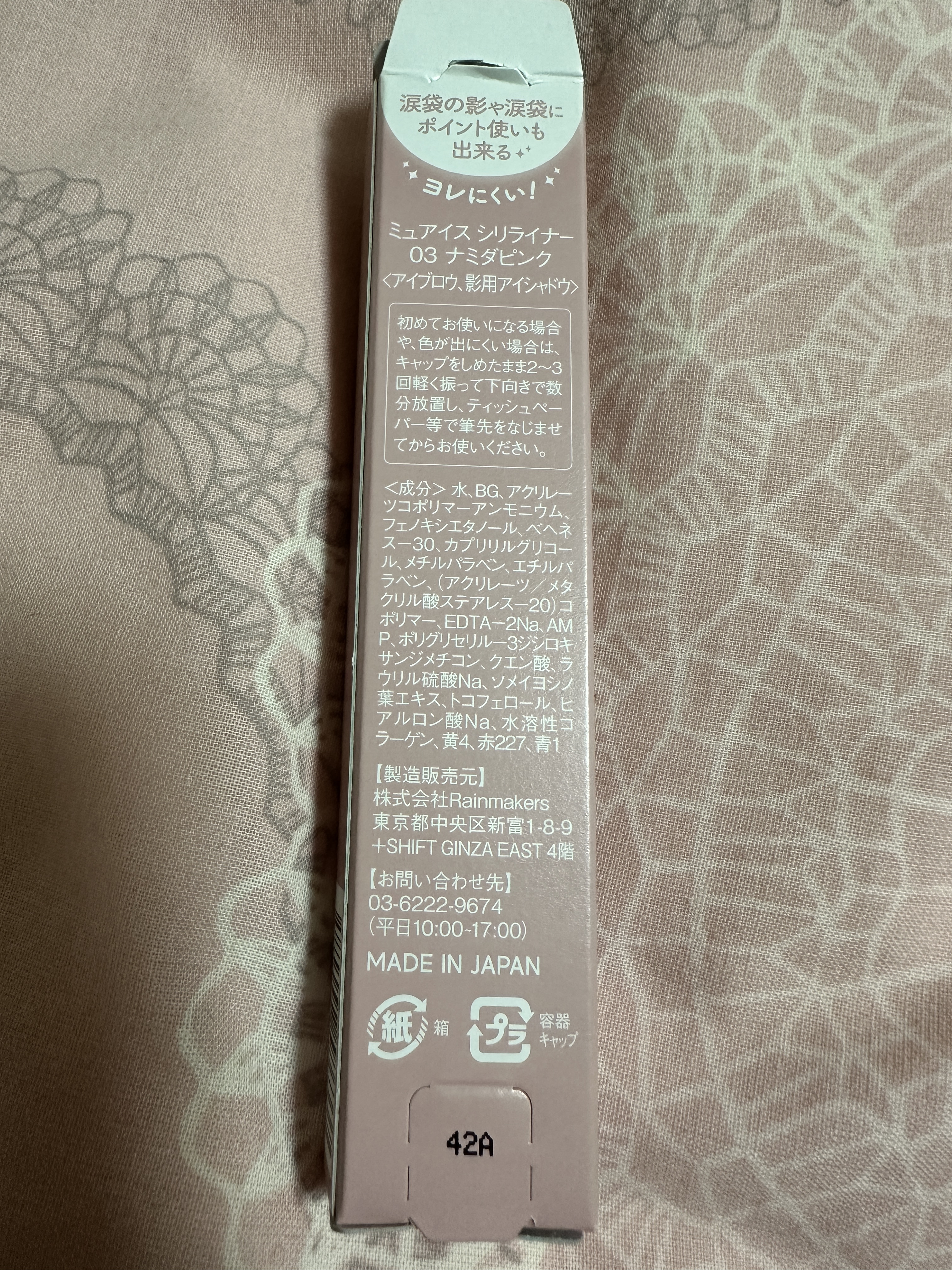 ◯muiceシリライナー 03 ナミダピンク『目尻などマルチに使えるニュアンスライナー!03は、アイライナーやアイブロウの足しカラーとしても使えるし、下瞼のまつ毛のキワに入れても可愛く仕上げてくれるカラー。発色が他の2色よりも薄めにしているの...