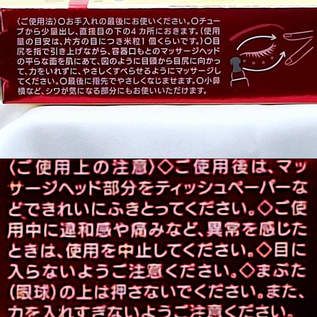 - 肌をひきしめる金属マッサージヘッドのついた目もと・部分用美容液。 有効成分ナイアシンアミド×ファーミングv成分配合。 年齢サインや出やすい目もとを重点的にケアします。