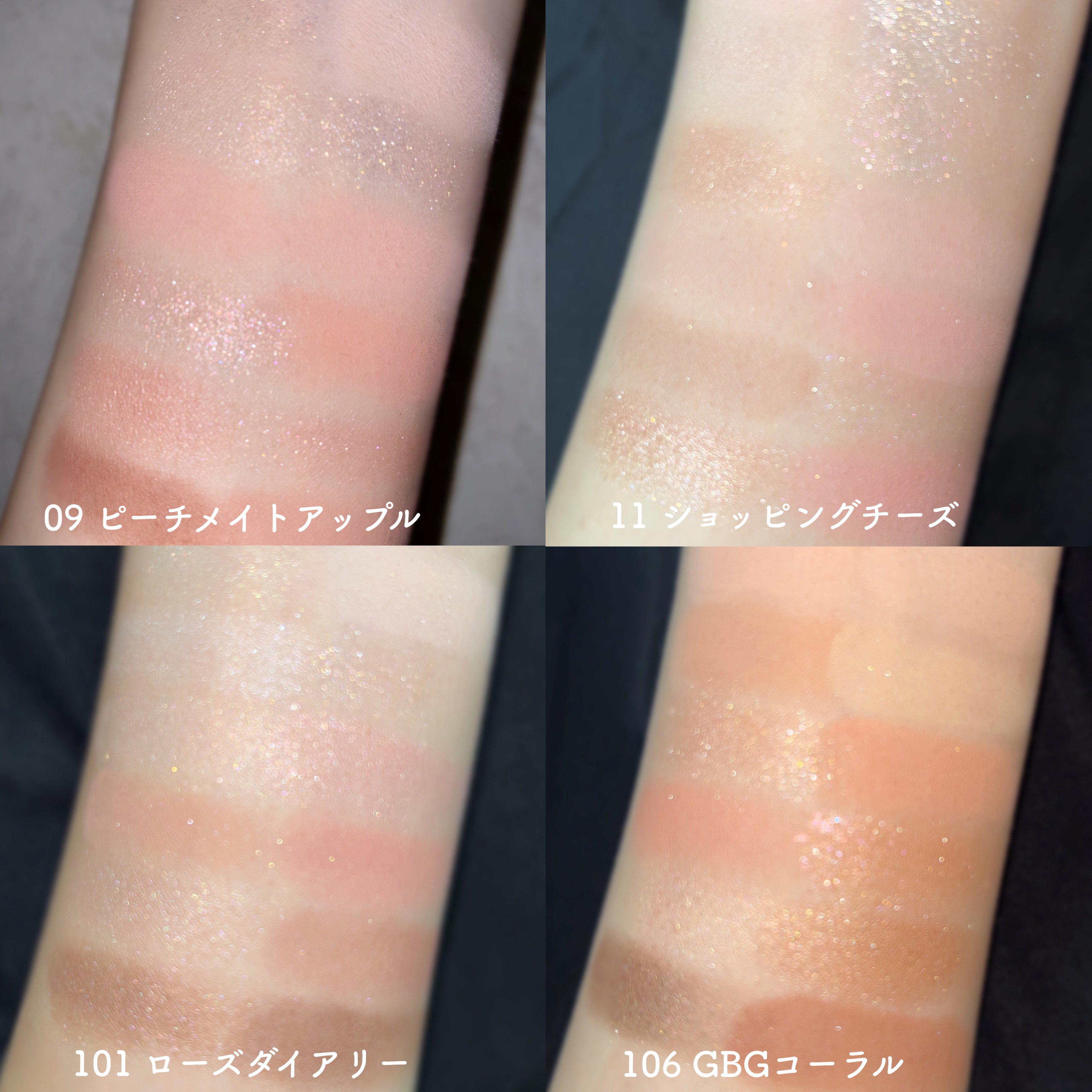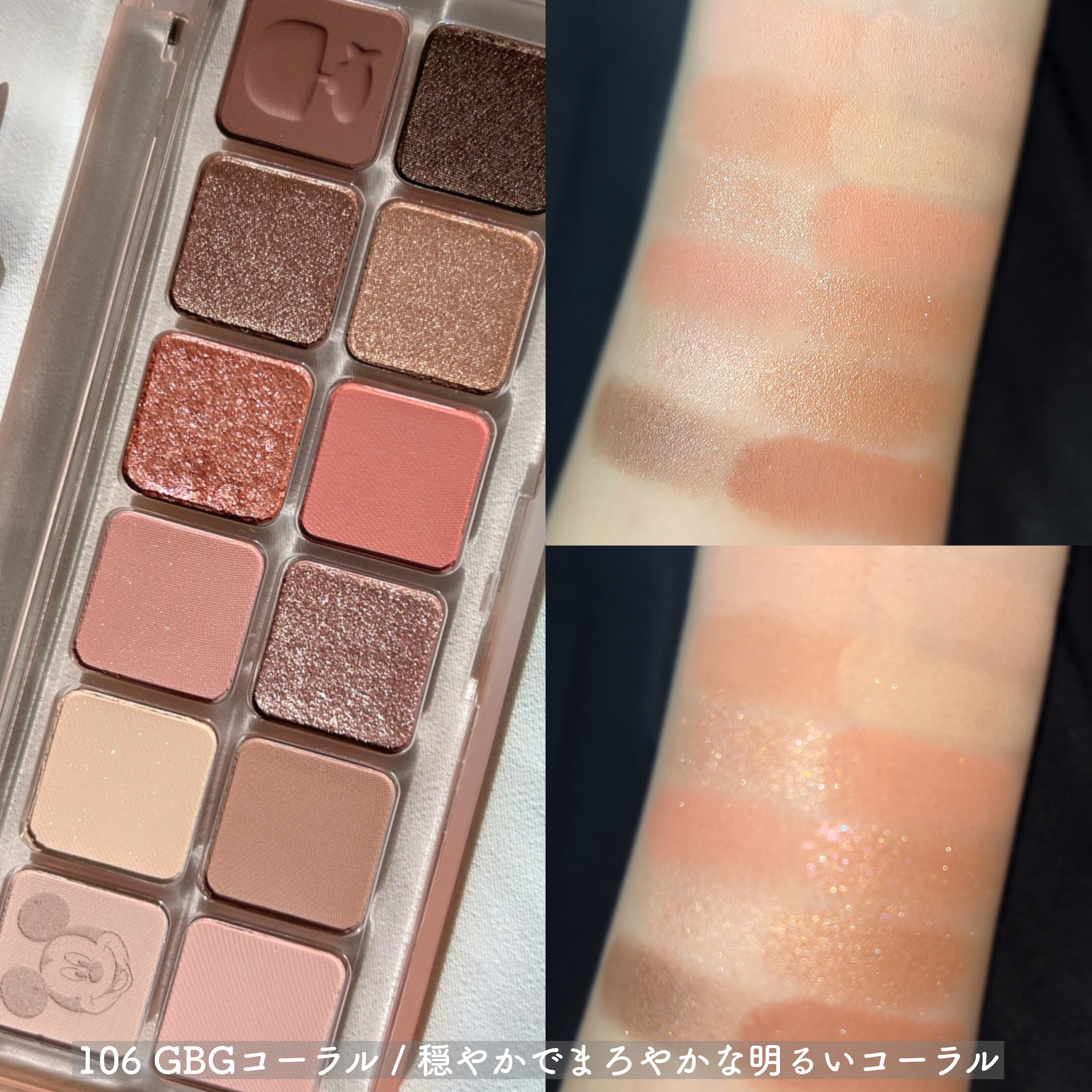 - 軽やかテクスチャーが目元に密着し、抜け感のある色使いが楽しめるデイリーパレット <101 ローズダイアリー(ROSE DIARY)> オーナメントを飾り付けたローズツリーのようにほのかに輝くウォームローズピンクカラー(イエベ秋)。 <102 ミュートアーカイブ(MUTE ARCHIVE)> 少女たちのピンキーなホームパーティームードを盛り込んだクールでヌーディーなミューテッドモブカラー(ブルべ夏ミュート)。 <103 バニラヘイズ(VANILLA HAZE)> 焼きたてのジンジャークッキーのように暖かく香ばしいウォームミュートカラー(イエベ秋ミュート)。 <104 GHR ピンク(GYEONGHOERU FLOWER FESTIVAL)> 春の日の美しく優雅な色を詰め込んだピンクカラーパレット。イエベ春&ブルベ夏におすすめのパレットです。 <105 DSG バイオレット(DEOKSUGUNG STONE WALL ROAD)> ほんのりピンクがかった柔らかなモーブカラーパレット。ブルベ夏&ブルベ冬におすすめのパレットです。 <106 DBG コーラル(GYEONGBOKGUNG STROLL)> 明るい日差しの色を取り入れたデイリーなコーラルカラー。イエベ春&ブライト秋におすすめのパレットです。