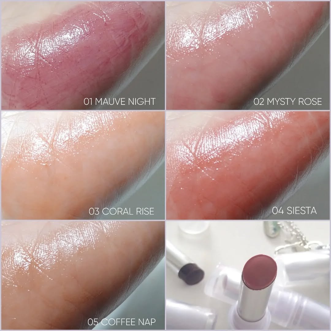 この生まれたてのみずみずしいツヤ感をどうやって作ったらだせるのか…と感動してしまうアイテムで、いつもつけたてのような仕上がり♡ するするなめらかで体温でじゅわ〜とツヤが広がります♡♡ このじゅわ感なのに発色がすごくいいのでそれぞれのカラーがちゃんと主張してくれるのも嬉しい♡♡