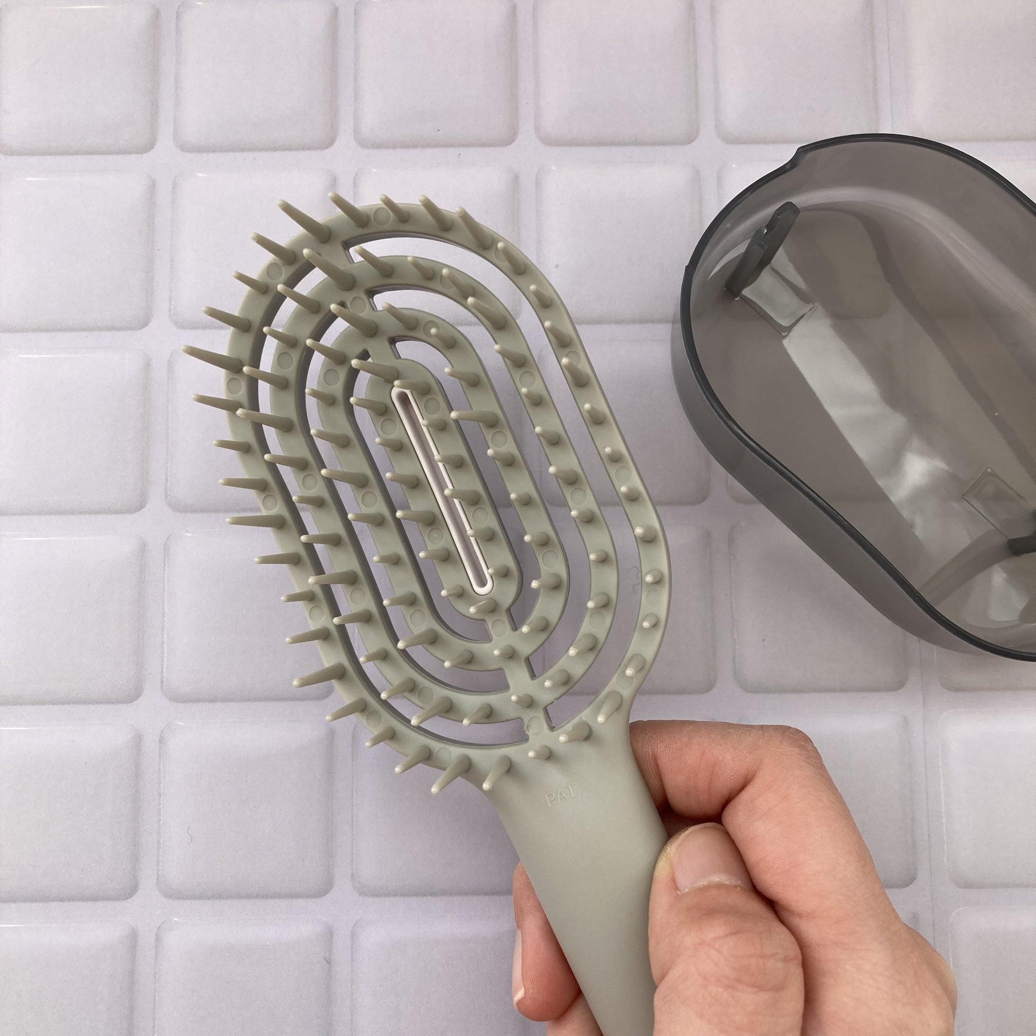 - #バズリブラシのいいとこどり #立つヘアブラシ #まるっと洗えるヘアブラシ ✨コレ1本でヘアケア悩みを解消✨ ①ブラッシング&スタイリング ②ドライ&ブロー ③スカルプケア ④トリートメントコーム 💡おすすめPoint💡 1)特徴的なピン ⇒長さの異なる3本のピンが短い毛~長い毛までしっかりキャッチ ⇒タテ・ヨコ・ナナメ満遍なくとかせて、簡単にやさしくサラサラに ⇒しなやかなピンで、濡髪も細い毛も負担が少なくダメージ減 ⇒円錐形のピンで、トリートメントがピンに付着しづらく、髪に馴染む 2)ブラシ構造 ⇒クモの巣みたいな通気性の良い構造で、速乾だから熱ダメージ減 ⇒水はけも良いので、お風呂でも使いやすい ⇒頭の丸みにあわせてカーブ状だから、頭皮にフィットして気持ちいい ⇒やわらか素材なので、スカルプケアも頭皮にぴったり 3)軽量+コンパクト ⇒「立つヘアブラシ」ケースを付ければ、自立するから、すき間収納OK! ⇒軽量&コンパクトでケース付き、旅行も携帯もラクラク 4)まるっと洗えて清潔 ⇒スタイリング剤・汗でベタベタ髪も大丈夫! ⇒海やプールでも使っても洗える