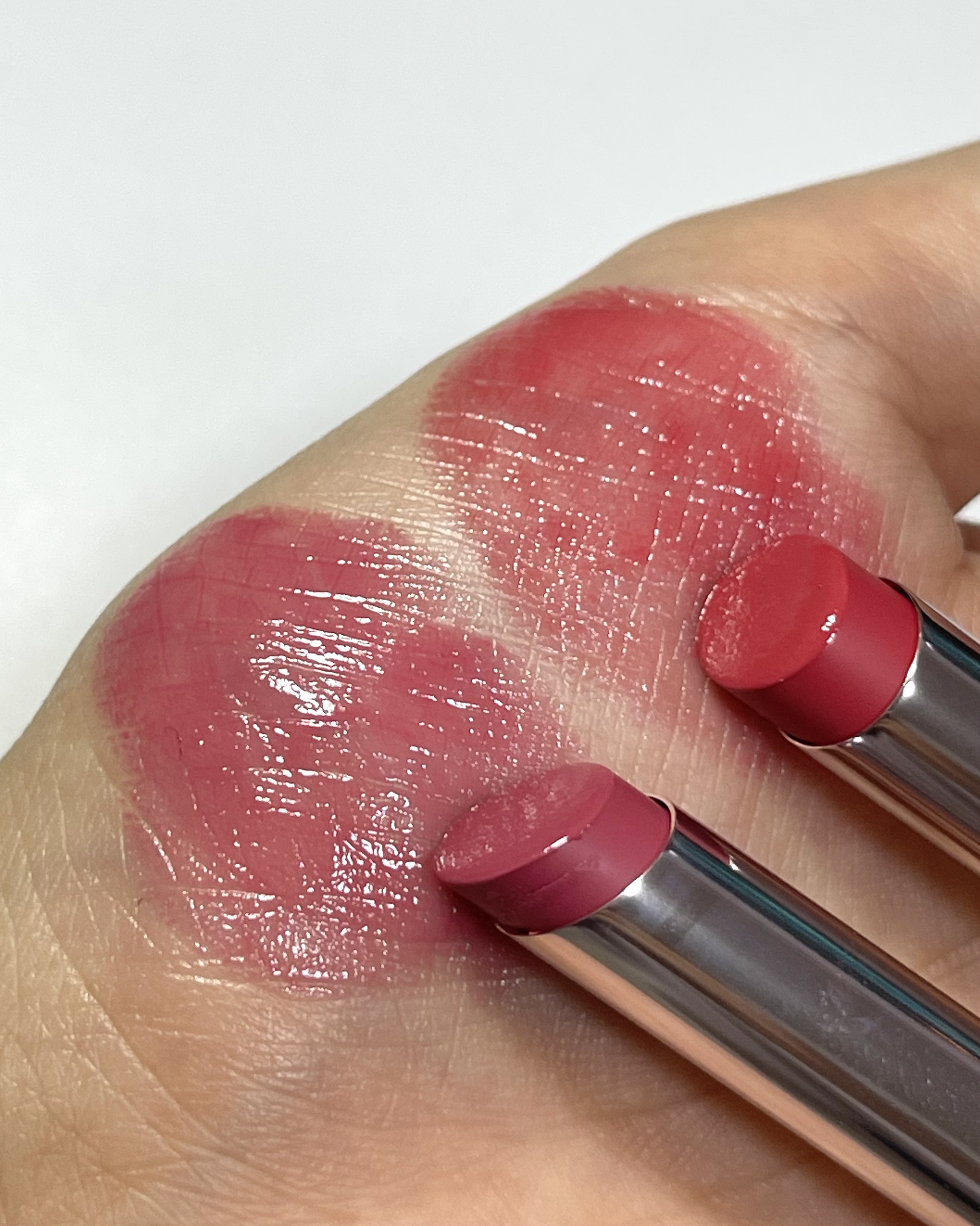 このカラーは深い赤味のあるピンク。 ツヤ感もあってメイクした!って感じになる🥺 ティッシュオフすると色味も落ちるけど、ツヤ感はそのままで落ちても汚くないの。 濃いめのカラーでもムラにもなりづらくするする塗れる✨ 13番はすっぴんでも合わせやすいけど、12はメイクしてないと唇だけ目立つかな。 ナチュラルメイクやすっぴんの時に使いたい人は13。お出かけやお仕事で使いたい人は12がおすすめ。 プチプラでこのクオリティすごいよ… バズリップなだけある。 見つけたら即確保だよ!🤔✨