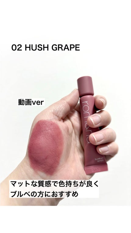 \絶妙ミュートグレープ🍇/♡rom&ndCOLORLIPMATTE02HUSHGRAPEアンティーク調の絶妙ミュートグレープ💜彩度低めの、少しくすみを感じるモーヴピンク色。紫みも感じられる絶妙カラーでおしゃれに仕上がります☺︎プライマーのよう...