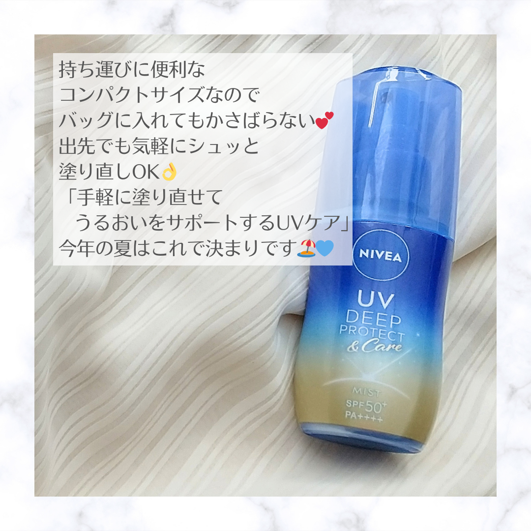 「ニベア花王」さまから商品提供をいただきました!・ニベアUVディーププロテクト&ケアジェルA・ニベアUVディーププロテクト&ケアミルクミストジェル、ミストともにSPF50+PA++++紫外線をしっかりブロックしてくれるので夏に向けて日焼け、シ...