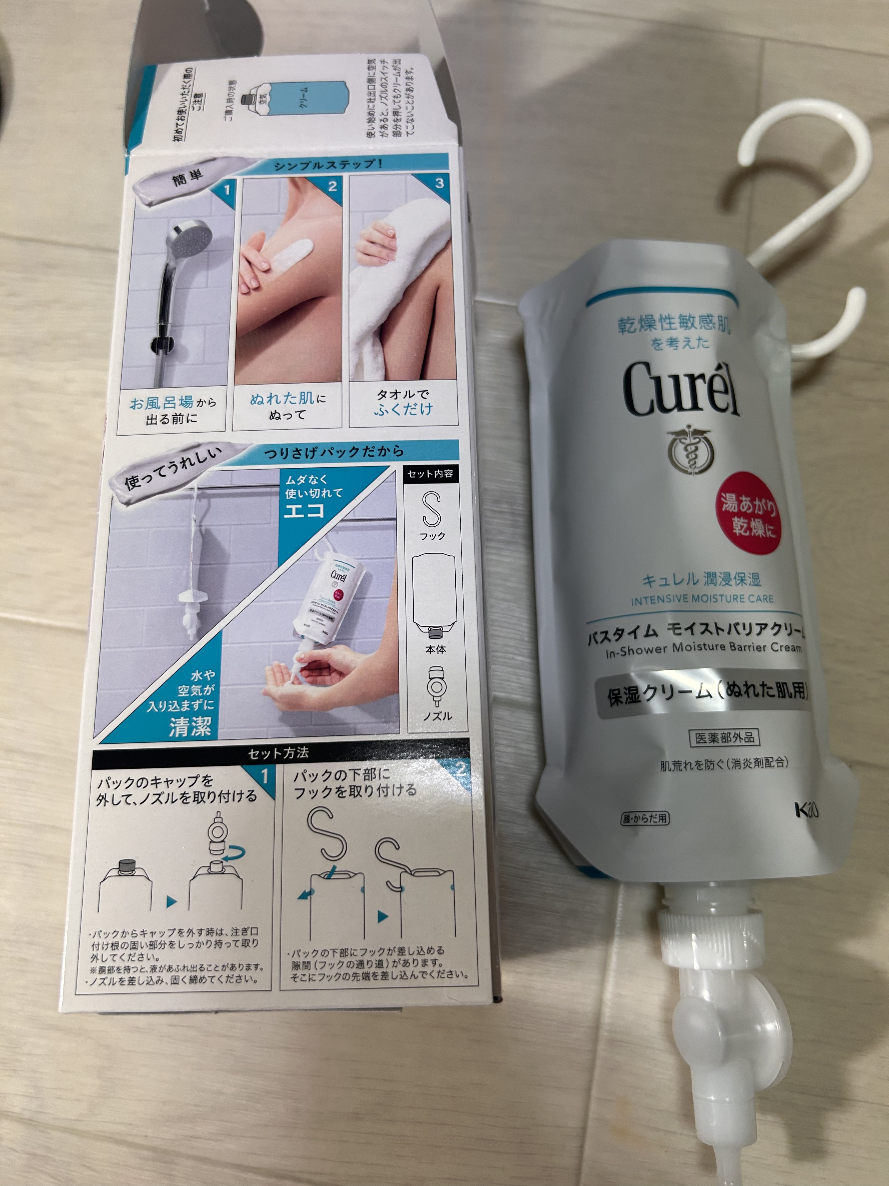 キュレルバスタイムモイストバリアクリーム【本体310g/¥1,980〜】キュレルの入浴剤が大好きな私🛀🫧今回は濡れたまま使えるボディークリームもget★☑︎S字フックでお風呂に掛けれる☑︎濡れた手でポンプ押すだけ☑︎詰め替え用もあるお風呂の中...
