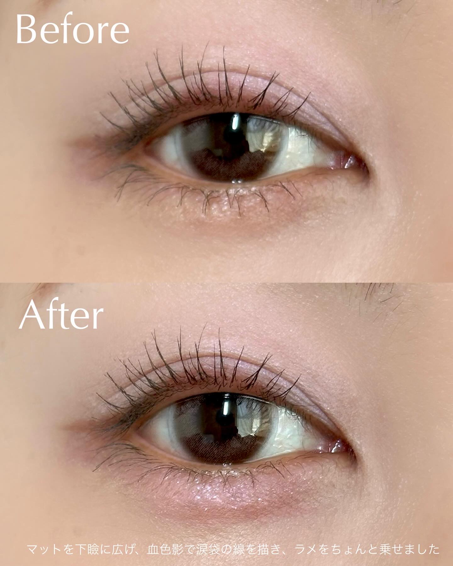 - マット・パール・ラメ入りで3パターンの涙袋が作れる 涙袋用アイシャドウパレット 涙袋用に3色、涙袋の影用に1色がセットされた涙袋用のアイシャドウパレットです。 その日の気分やTPOに合わせて選んでみてくださいね! マットは透け感があり目元のシワが気になりにくく、 パールは繊細で透明感のあるツヤっとした仕上がりに、 ラメはキラキラと輝く透け発色です。 涙袋の影用の「血色影カラー」は、影寄りの色なのに血色感もあって目元が暗くならない パウダーだからこそできた絶妙な色味なんです!