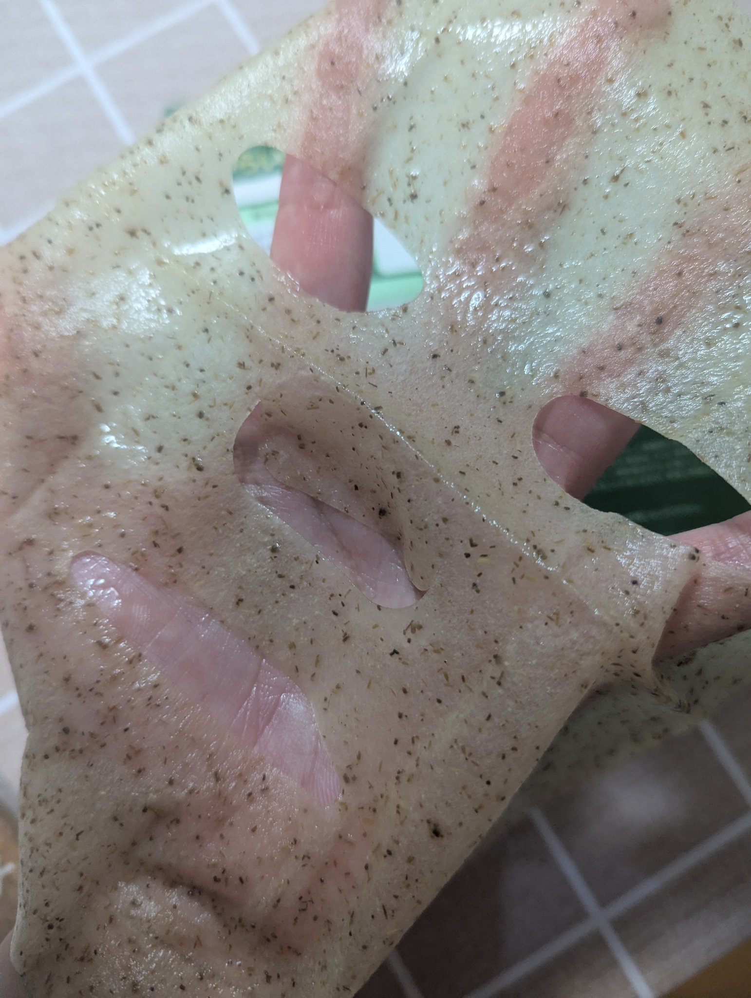 - <7枚> 水、BG、グリセリン、PEG-12、アスコルビン酸、アプリコット核油ポリグリセリル-6エステルズ、アルギン酸Na、アロエベラ葉エキス、オウゴン根エキス、オリーブ葉エキス、カワラヨモギ花エキス、カンゾウ根エキス、キサンタンガム、クエン酸、クエン酸Na、グリチルリチン酸2K、コハク酸ジエトキシエチル、ツボクサ葉/茎エキス、ドクダミエキス、ナツメ果実エキス、ハトムギ種子エキス、ヒアルロン酸Na、ピロ亜硫酸Na、フェノキシエタノール、ホホバ葉エキス、マグワ根皮エキス、マンダリンオレンジ果皮エキス、マンニトール、メチルパラベン、メリアアザジラクタ葉エキス、ヨモギ葉エキス