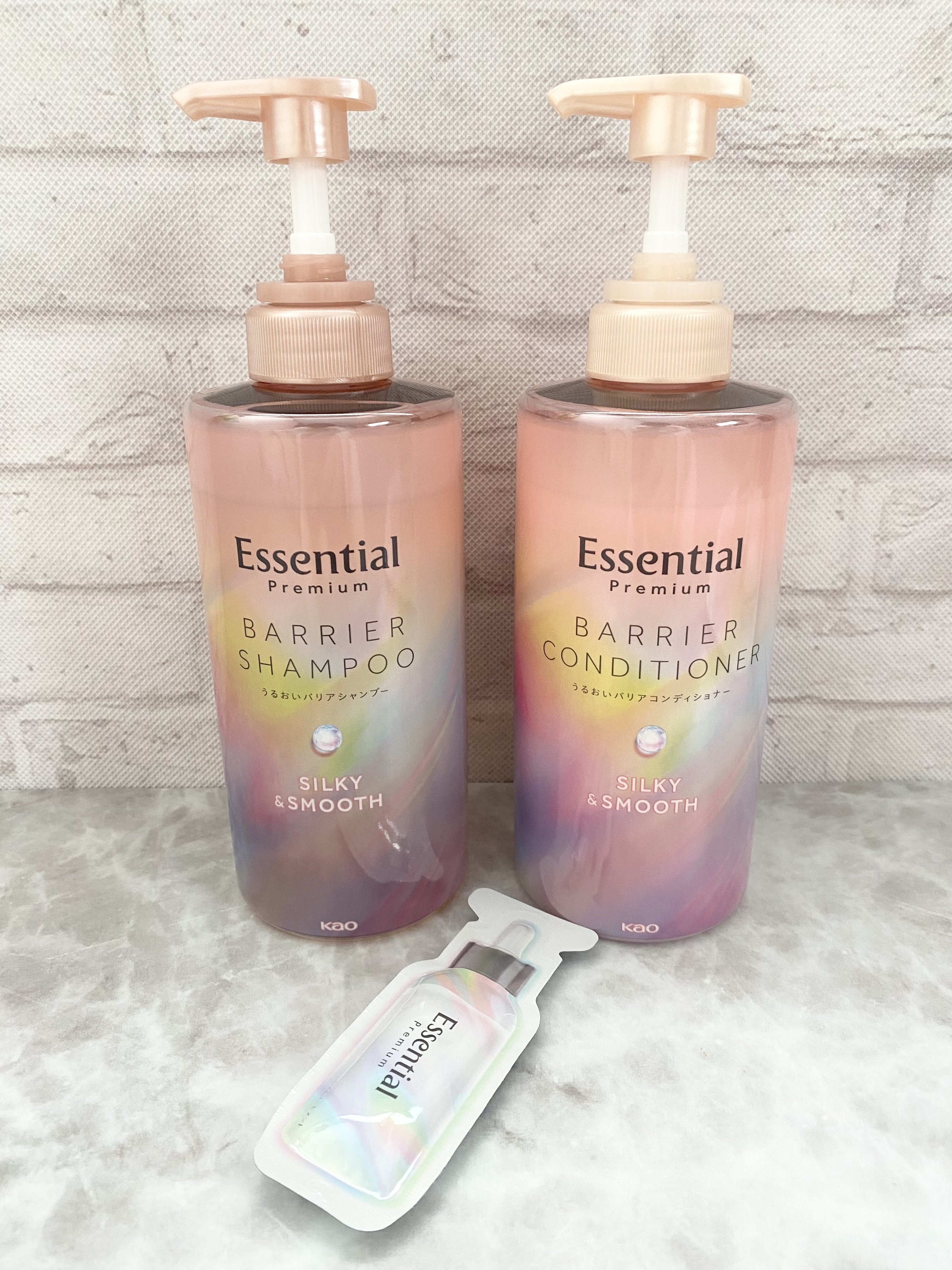 花王「エッセンシャル プレミアム バリアシルキー&スムースポンプセット+うるツヤチャージヘアパック」を使ってみました😊✼••┈┈••✼••┈┈••✼••┈┈••✼••┈┈••✼シャンプーはアミノ酸系洗浄成分使用、とろふわスフレ泡でやさしく洗え...