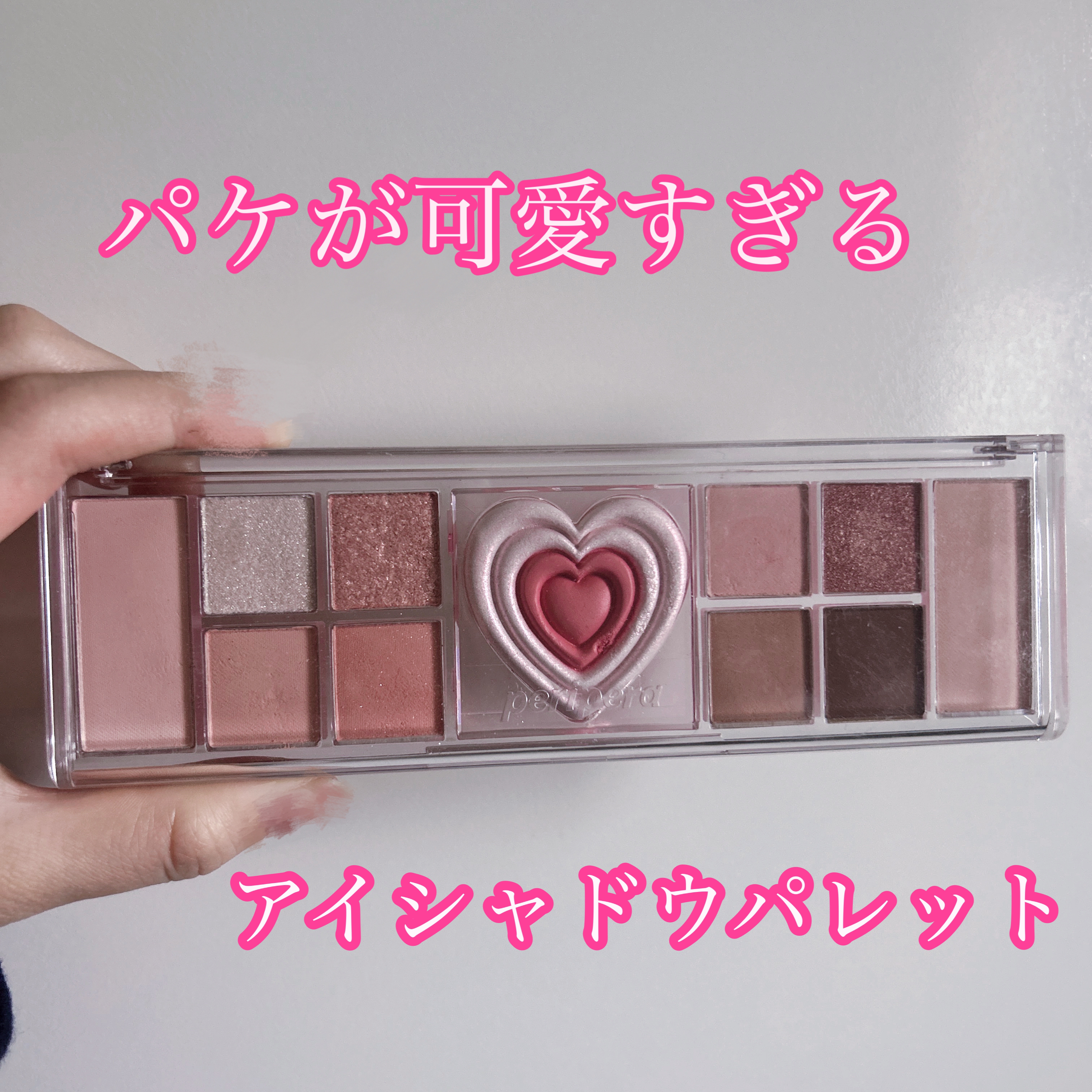 見た目かわいいアイテム🩷PERIPERAオールテイクムードライクパレット01PRESTIGEPINK右のピンクに左のベージュピンク真ん中のcheekもつやんとなる🥰涙袋にも使うと統一感🎀真ん中のハートの白っぽいのを涙袋に使ってもかわいい🤍色ん...