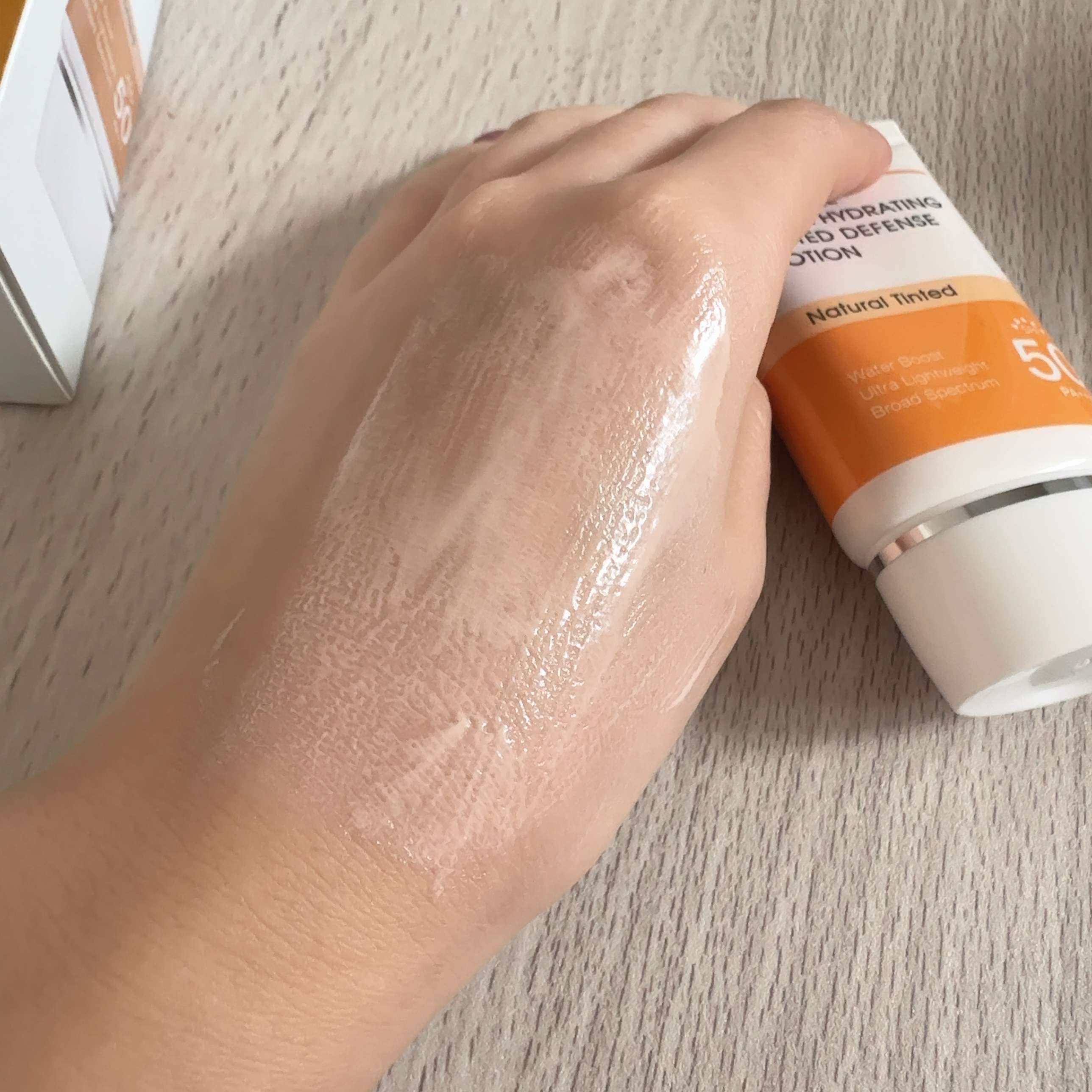 水のような使用感🫧 保湿もできる色付き日焼け止め お肌に乗せると『本当に日焼け止め?』と、びっくりするほどみずみずしくスッと伸びて馴染んでくれます.ᐟ.ᐟ 自然に肌全体をトーンアップしてくれてツヤ感がすごい♡