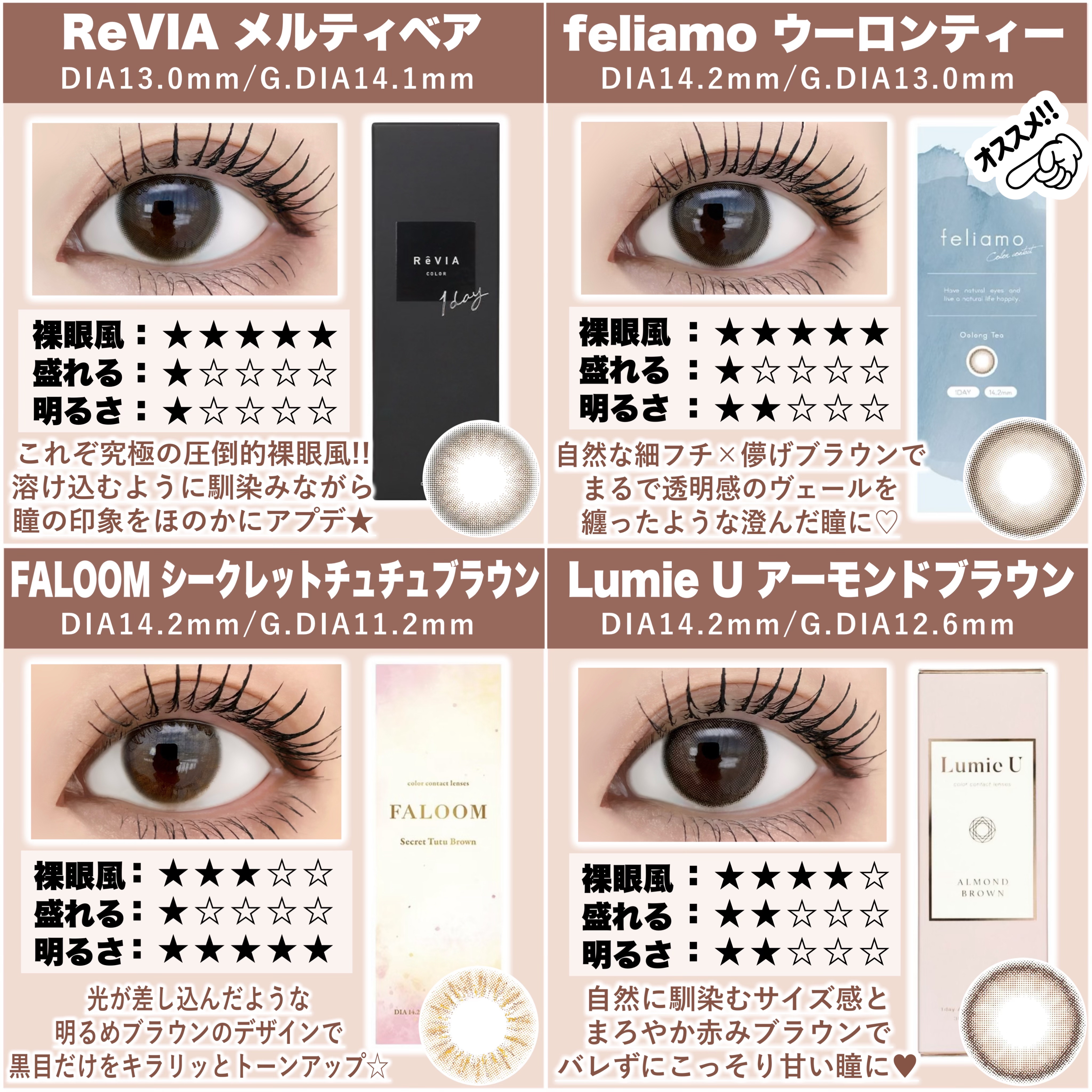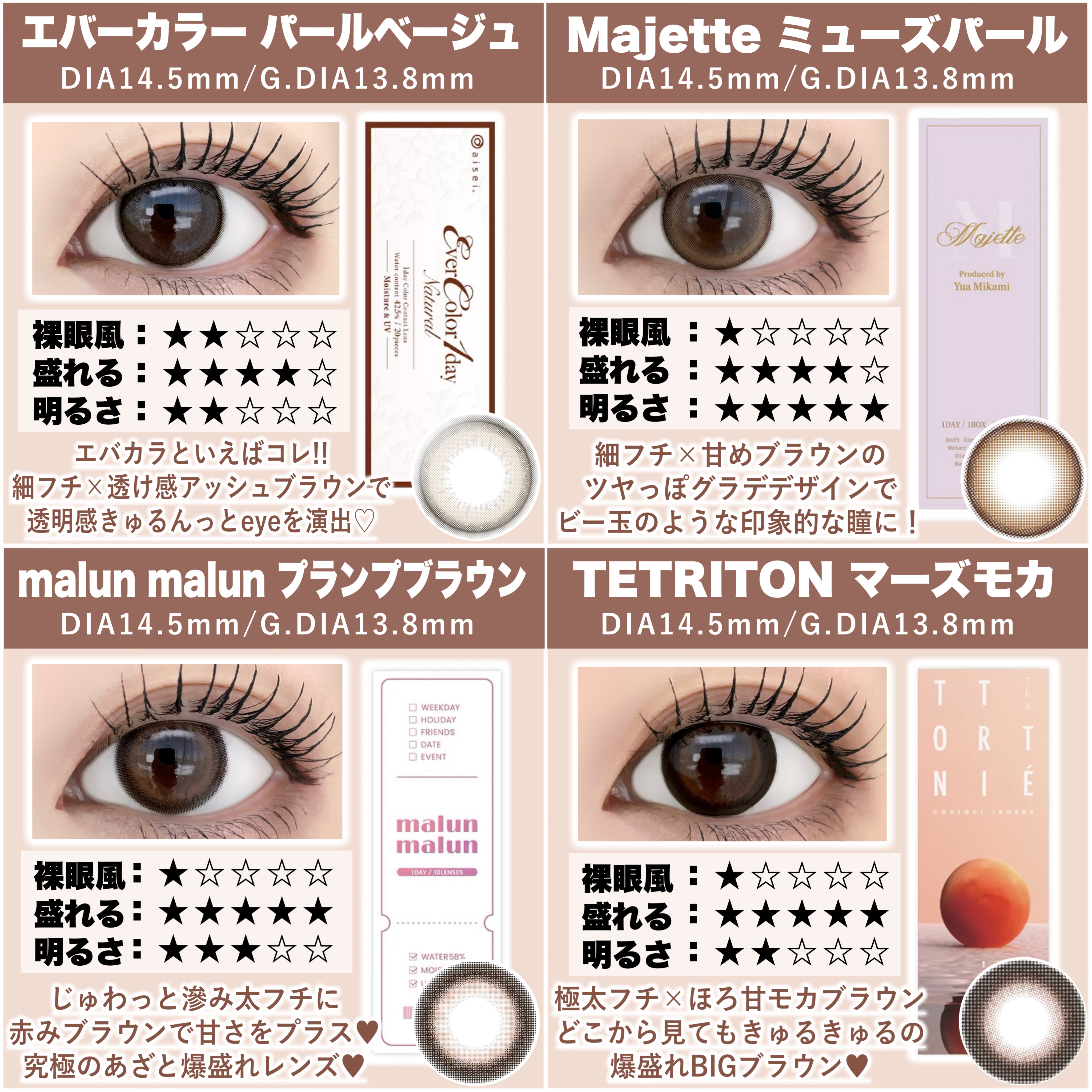 ナチュラル細フチ × 裸眼盛れのトキメキうるみレンズ💓 さりげない細フチと透明感ブラウンが、自然に瞳を綺麗にみせてくれる裸眼盛れレンズ。 トレンド太フチ × くりっと盛れの無敵ブラウンレンズ💓 くっきり太フチとツヤっぽブラウンが、きゅるっとドーリーな瞳を演出。 やり過ぎ感のないきゅるんな瞳になれます🥺💖