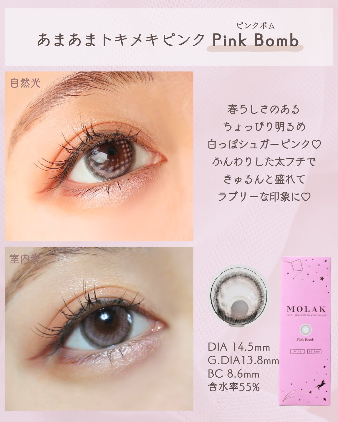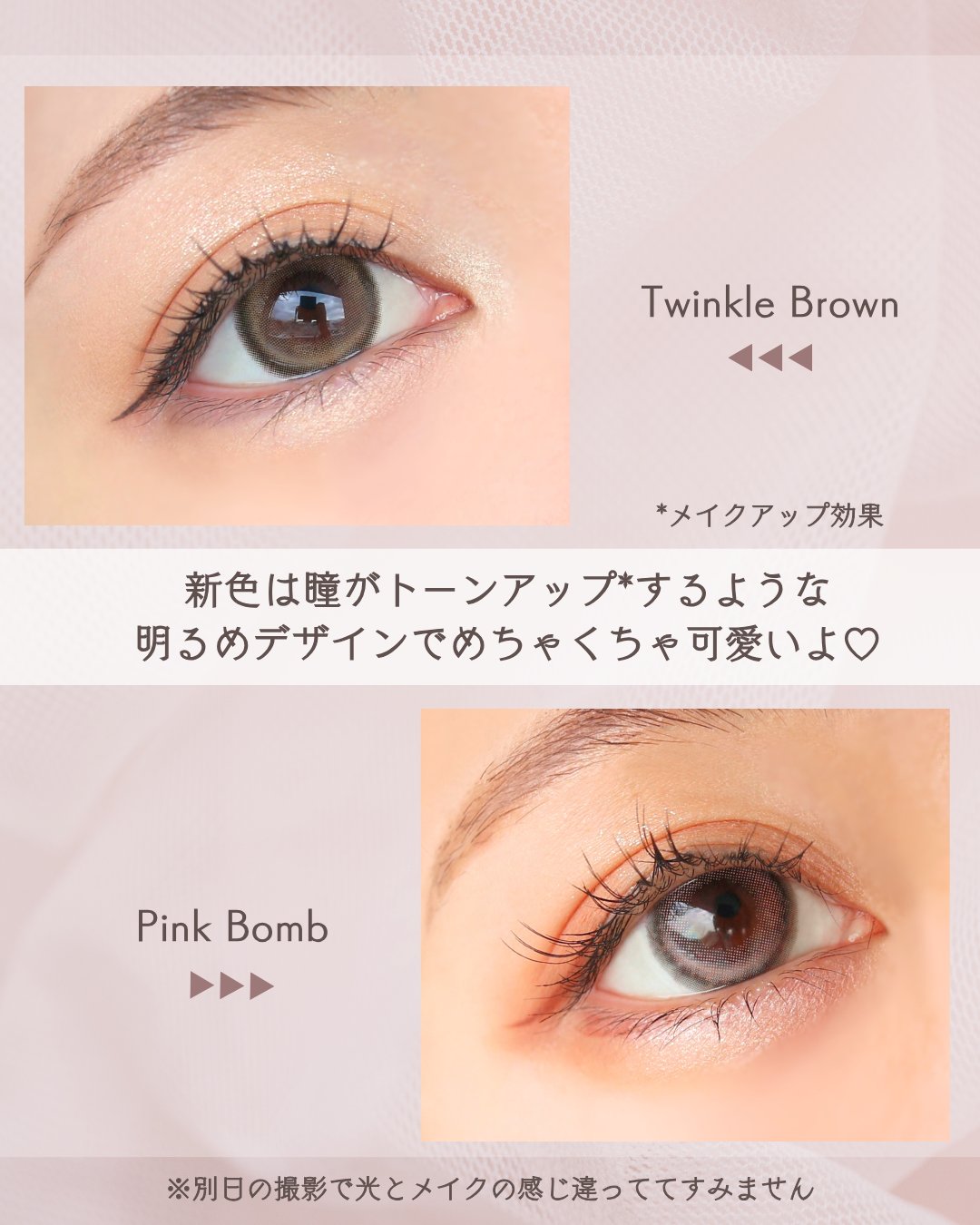 MOLAK(モラク)から恋する♡あまキュンレンズ誕生🐣MOLAK1Dayトゥインクルブラウンピンクボム🤎TwinkleBrownDIA:14.5mm|DIA.G:13.8mmイエローブラウン系のハイライトが3つもデザインされていて瞳がキラッと...