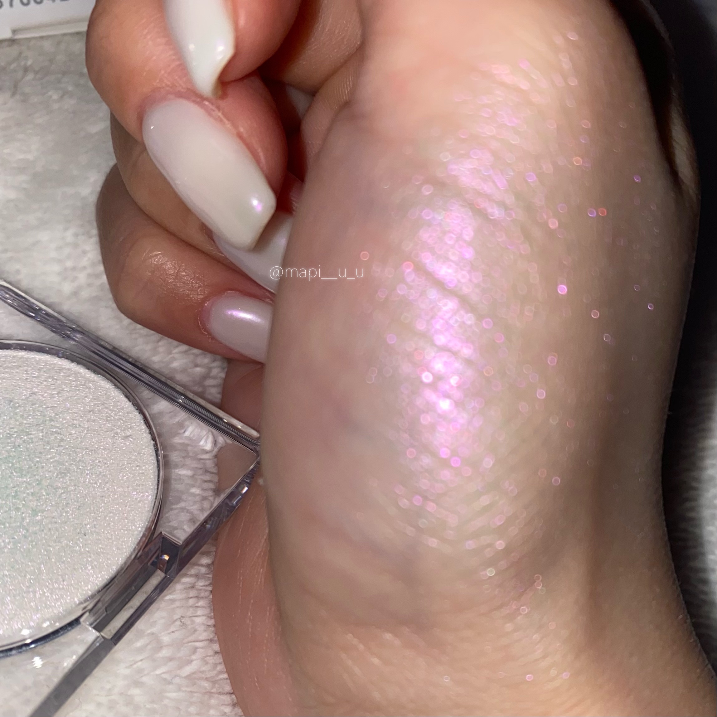 一見ホワイトっぽく見えるんだけど実際に肌にのせるとピンクの偏光ラメが輝いてめちゃくちゃ可愛いの…目頭や鼻にピンポイントにのせてもブラシでふんわり顔全体にのせてもかわいい♡ CipiCipiで人気なブリンブリンハイライターから限定色“101 ピンクオーラ”が登場🪄💓 ぜひ気になった方は、チェックしてみてください🫶🏻️💓