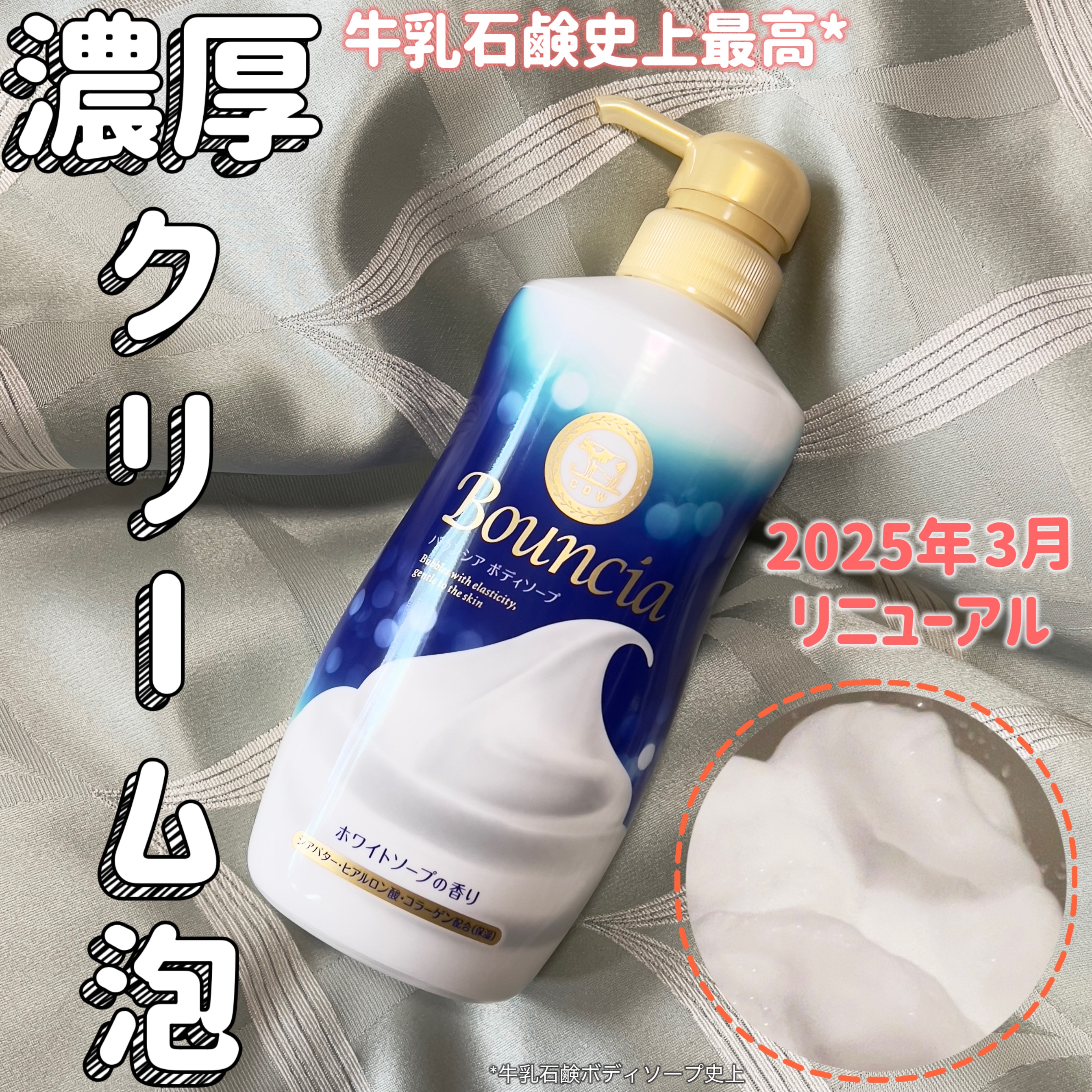 牛乳石鹸さまからいただきました。バウンシアボディソープホワイトソープの香りボディソープ「バウンシア」がリニューアル🐄牛乳石鹸史上最高*の濃厚クリーム泡になったよ🫧ツノが立つほど濃厚でクリーミイ。疲れた体をもっちり泡が包み込み、うるおいを守りな...