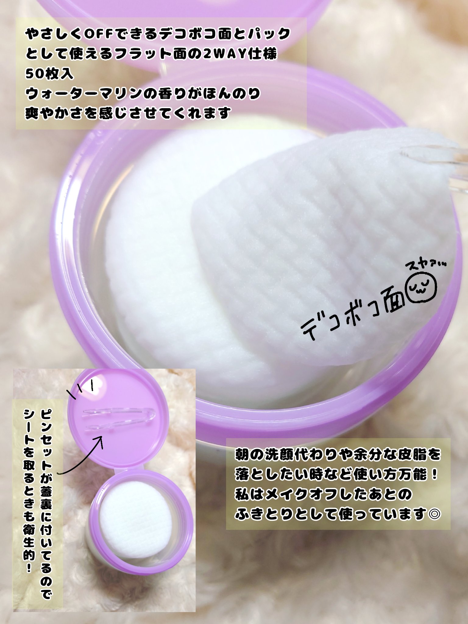 | パッド自体は柔らかく、美容液も多め。拭き取った後はしっかりとお肌が潤います♡ | 詳細を見る | ||