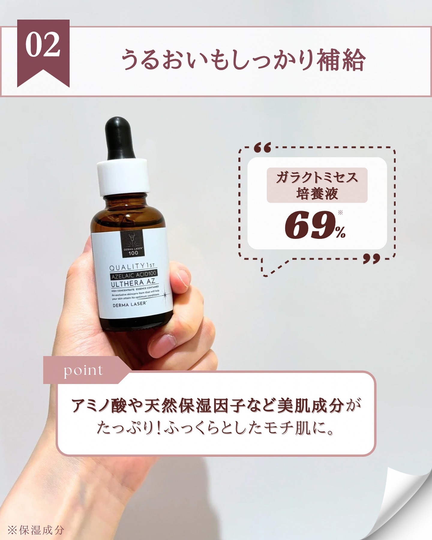- <ダーマレーザー ウルセラAZ> ガラクトミセス培養液、BG、ナイア シンアミド、ジグリセリン、アゼライン酸、グリチルリチン酸2K、ティーツリー葉油、セラミドN P、ツボクサエキス、オウゴン根エキス、イタドリ 根エキス、カンゾウ根エキス、チャ葉エキス、ローズマリー葉エキス、カミツレ花エキス、トリ プロピレングリコール、水添レシチン、フィトステロールズ、PEG-60水添ヒマシ油、エチル ヘキシルグリセリン、1,2-ヘキサンジオー ル、ホウケイ酸(Ca/Na)、酸化銀、クエン酸、クエン酸Na、水、ラベンダー油、レモン果皮油、ライム油、レモングラス油、エンピツビャクシン 油、ローズマリー葉油