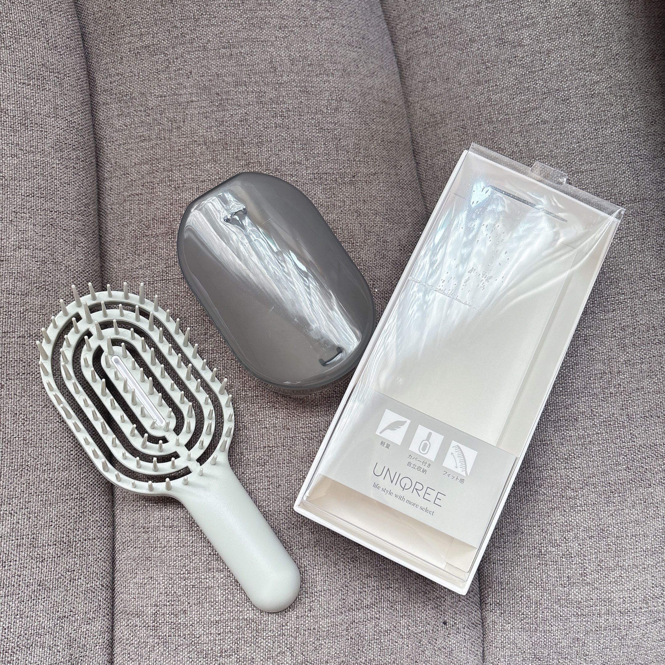 - #バズリブラシのいいとこどり #立つヘアブラシ #まるっと洗えるヘアブラシ ✨コレ1本でヘアケア悩みを解消✨ ①ブラッシング&スタイリング ②ドライ&ブロー ③スカルプケア ④トリートメントコーム 💡おすすめPoint💡 1)特徴的なピン ⇒長さの異なる3本のピンが短い毛~長い毛までしっかりキャッチ ⇒タテ・ヨコ・ナナメ満遍なくとかせて、簡単にやさしくサラサラに ⇒しなやかなピンで、濡髪も細い毛も負担が少なくダメージ減 ⇒円錐形のピンで、トリートメントがピンに付着しづらく、髪に馴染む 2)ブラシ構造 ⇒クモの巣みたいな通気性の良い構造で、速乾だから熱ダメージ減 ⇒水はけも良いので、お風呂でも使いやすい ⇒頭の丸みにあわせてカーブ状だから、頭皮にフィットして気持ちいい ⇒やわらか素材なので、スカルプケアも頭皮にぴったり 3)軽量+コンパクト ⇒「立つヘアブラシ」ケースを付ければ、自立するから、すき間収納OK! ⇒軽量&コンパクトでケース付き、旅行も携帯もラクラク 4)まるっと洗えて清潔 ⇒スタイリング剤・汗でベタベタ髪も大丈夫! ⇒海やプールでも使っても洗える