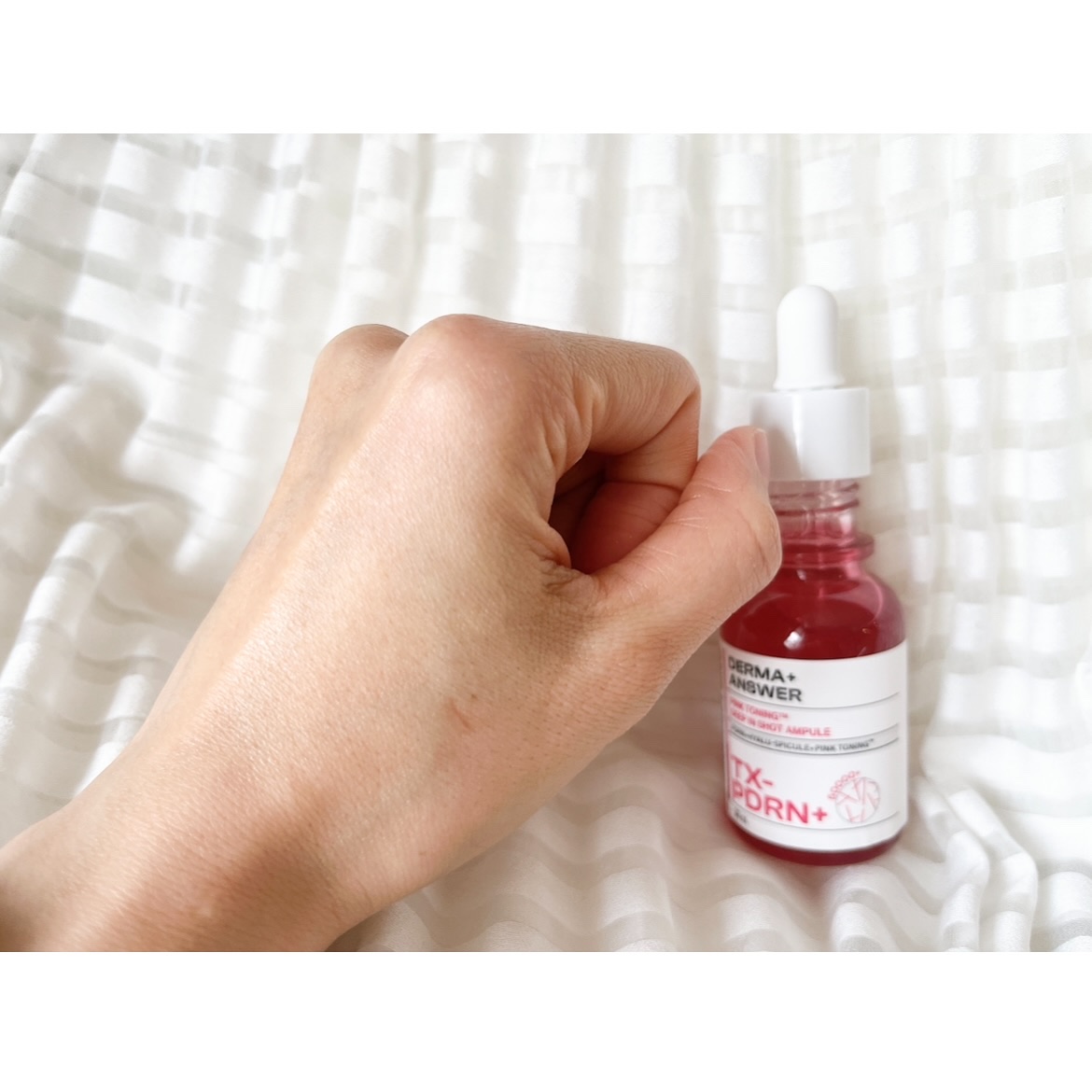 PDRN+トラネキサム酸の美白特化成分組み合わせでくすんだ毛穴を明るく照らしてくれるピンクライト針美容液💖🪡 塗るサーモン注射と言われているPDRN配合で毛穴、シミ、ニキビ跡にも効果的👌 ほんのりピンクがかったとろみのあるテクスチャー💓 伸びが良くもっちりツヤ肌になったよ😌