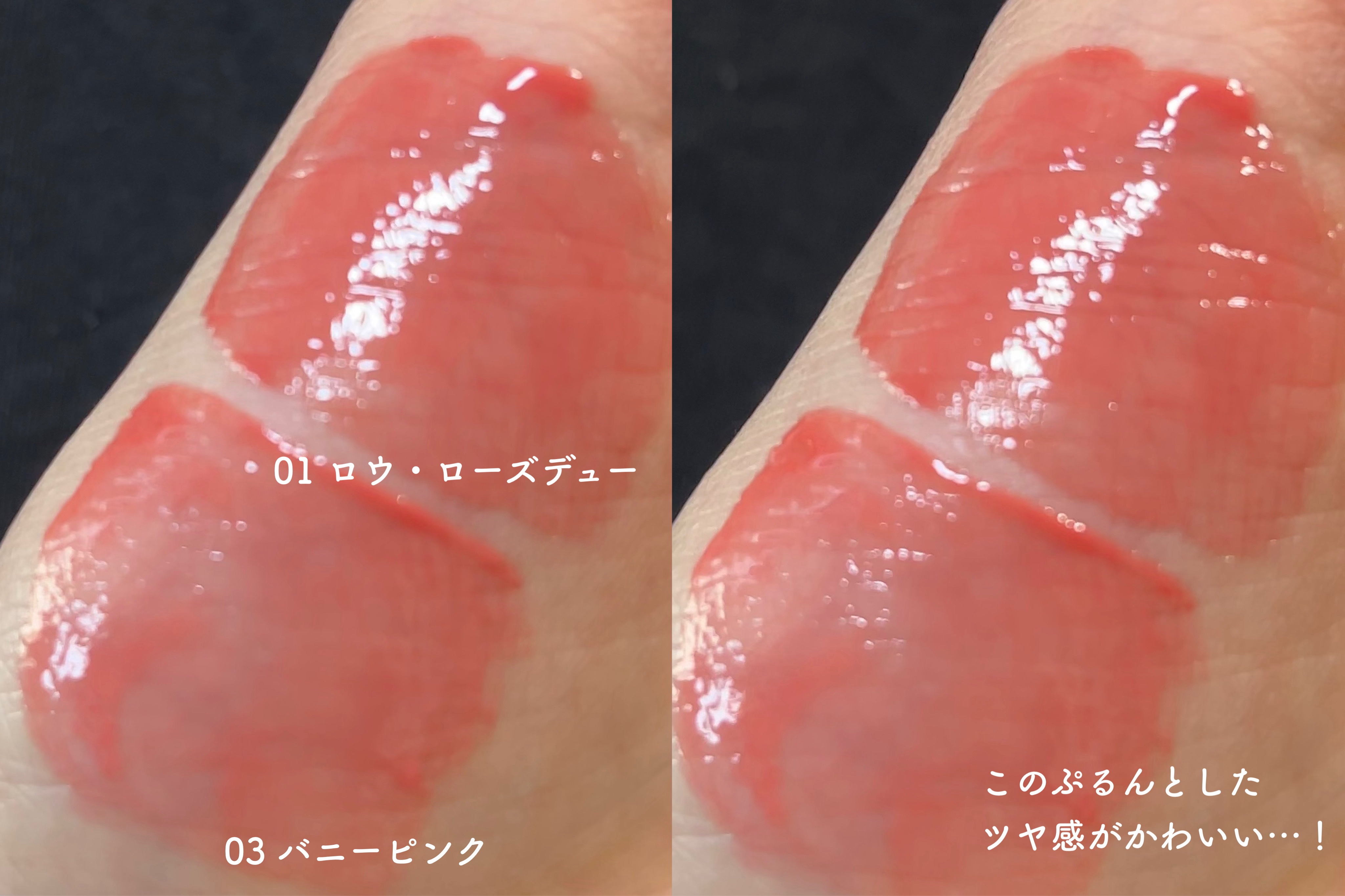 - <01 ロウ・ローズデュー> リンゴ酸ジイソステアリル、トリ(カプリル/カプリン酸)グリセリル、水添ポリイソブテン、ビスジグリセリルポリアシルアジペート-2、ダイマージリノール酸(フィトステリル/イソステアリル/セチル/ステアリル/ベヘニル)、ダイマージリノール酸ダイマージリノレイルビス(ベヘニル/イソステアリル/フィトステリル)、マイクロクリスタリンワックス、トリイソステアリン酸ポリグリセリル-2、(ヒマシ油/IPDI)コポリマー、合成ワックス、1,2-ヘキサンジオール、セスキオレイン酸ソルビタン、酸化チタン、ポリヒドロキシステアリン酸、(エチレン/プロピレン)コポリマー、酸化鉄、レシチン、香料、エチルヘキシルグリセリン、赤202、黄5、パルミチン酸エチルヘキシル、イソステアリン酸、ミリスチン酸イソプロピル、ポリリシノレイン酸ポリグリセリル-3、スクワラン、カカオ脂、水、トコフェロール、BHT、ヒアルロン酸Na、加水分解ヒアルロン酸、アセチルヒアルロン酸Na <02 ハニーコーラル> リンゴ酸ジイソステアリル、トリ(カプリル/カプリン酸)グリセリル、水添ポリイソブテン、ビスジグリセリルポリアシルアジペート-2、ダイマージリノール酸(フィトステリル/イソステアリル/セチル/ステアリル/ベヘニル)、ダイマージリノール酸ダイマージリノレイルビス(ベヘニル/イソステアリル/フィトステリル)、マイクロクリスタリンワックス、(ヒマシ油/IPDI)コポリマー、合成ワックス、トリイソステアリン酸ポリグリセリル-2、1,2-ヘキサンジオール、セスキオレイン酸ソルビタン、酸化チタン、ポリヒドロキシステアリン酸、(エチレン/プロピレン)コポリマー、黄5、レシチン、香料、エチルヘキシルグリセリン、パルミチン酸エチルヘキシル、イソステアリン酸、ミリスチン酸イソプロピル、赤202、ポリリシノレイン酸ポリグリセリル-3、黄4、スクワラン、カカオ脂、水、トコフェロール、BHT、ヒアルロン酸Na、加水分解ヒアルロン酸、アセチルヒアルロン酸Na <03 バニーピンク> リンゴ酸ジイソステアリル、トリ(カプリル/カプリン酸)グリセリル、水添ポリイソブテン、ビスジグリセリルポリアシルアジペート-2、ダイマージリノール酸(フィトステリル/イソステアリル/セチル/ステアリル/ベヘニル)、ダイマージリノール酸ダイマージリノレイルビス(ベヘニル/イソステアリル/フィトステリル)、マイクロクリスタリンワックス、トリイソステアリン酸ポリグリセリル-2、(ヒマシ油/IPDI)コポリマー、合成ワックス、酸化チタン、1,2-ヘキサンジオール、セスキオレイン酸ソルビタン、ポリヒドロキシステアリン酸、(エチレン/プロピレン)コポリマー、黄5、レシチン、香料、エチルヘキシルグリセリン、パルミチン酸エチルヘキシル、イソステアリン酸、ミリスチン酸イソプロピル、赤202、赤231、ポリリシノレイン酸ポリグリセリル-3、スクワラン、カカオ脂、水、トコフェロール、BHT、ヒアルロン酸Na、加水分解ヒアルロン酸、アセチルヒアルロン酸Na <04 フィーバーデュー> リンゴ酸ジイソステアリル、トリ(カプリル/カプリン酸)グリセリル、水添ポリイソブテン、ビスジグリセリルポリアシルアジペート-2、ダイマージリノール酸(フィトステリル/イソステアリル/セチル/ステアリル/ベヘニル)、ダイマージリノール酸ダイマージリノレイルビス(ベヘニル/イソステアリル/フィトステリル)、マイクロクリスタリンワックス、(ヒマシ油/IPDI)コポリマー、合成ワックス、1,2-ヘキサンジオール、セスキオレイン酸ソルビタン、トリイソステアリン酸ポリグリセリル-2、ポリヒドロキシステアリン酸、(エチレン/プロピレン)コポリマー、黄5、酸化チタン、レシチン、香料、エチルヘキシルグリセリン、赤202、パルミチン酸エチルヘキシル、イソステアリン酸、ミリスチン酸イソプロピル、ポリリシノレイン酸ポリグリセリル-3、スクワラン、カカオ脂、水、トコフェロール、BHT、ヒアルロン酸Na、加水分解ヒアルロン酸、アセチルヒアルロン酸Na <05 ハグデュー> リンゴ酸ジイソステアリル、トリ(カプリル/カプリン酸)グリセリル、水添ポリイソブテン、ビスジグリセリルポリアシルアジペート-2、ダイマージリノール酸(フィトステリル/イソステアリル/セチル/ステアリル/ベヘニル)、ダイマージリノール酸ダイマージリノレイルビス(ベヘニル/イソステアリル/フィトステリル)、マイクロクリスタリンワックス、(ヒマシ油/IPDI)コポリマー、合成ワックス、1,2-ヘキサンジオール、セスキオレイン酸ソルビタン、トリイソステアリン酸ポリグリセリル-2、ポリヒドロキシステアリン酸、(エチレン/プロピレン)コポリマー、黄5、酸化チタン、レシチン、香料、エチルヘキシルグリセリン、赤202、パルミチン酸エチルヘキシル、イソステアリン酸、ミリスチン酸イソプロピル、ポリリシノレイン酸ポリグリセリル-3、スクワラン、カカオ脂、水、トコフェロール、BHT、ヒアルロン酸Na、加水分解ヒアルロン酸、アセチルヒアルロン酸Na <06 ジンジ