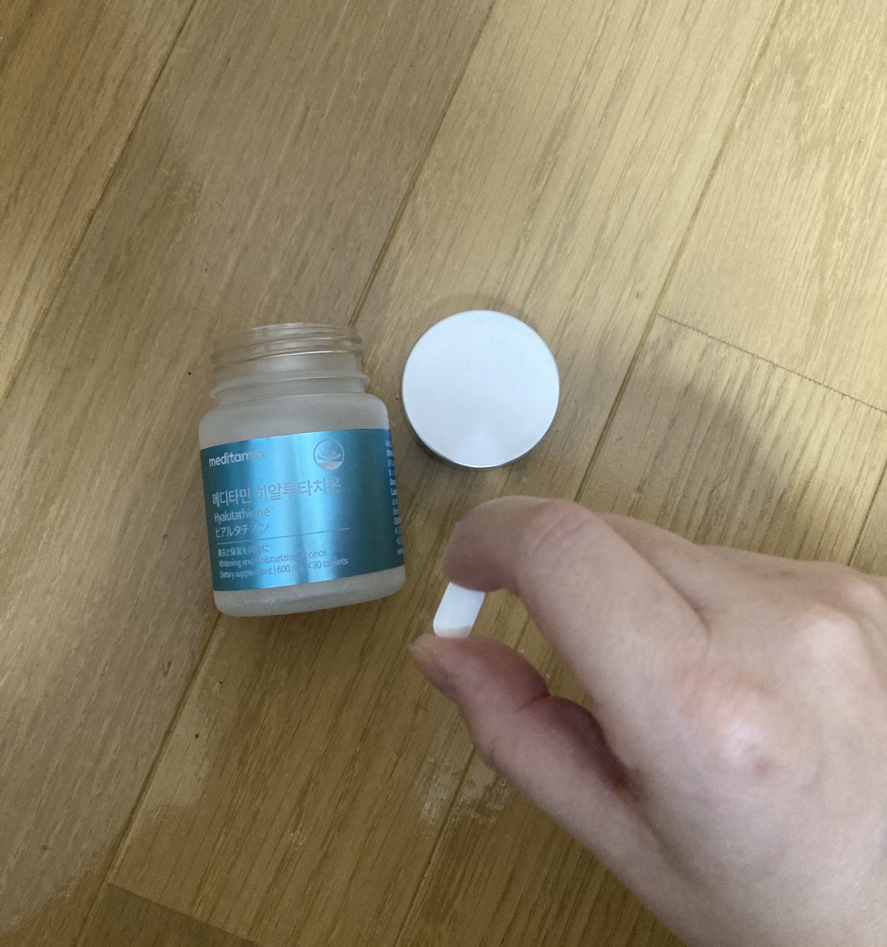 9つの美容成分がたっぷり含有されたサプリメントですヒアルロン酸.グルタチオン.NMNビタミンC.Lーシスチン.エラスチン.コラーゲンミルクセラミド.ドクダミエキス粉末配合で1日1粒で美肌ケアができます白い錠剤はよく見るとツブツブとした含有物が...