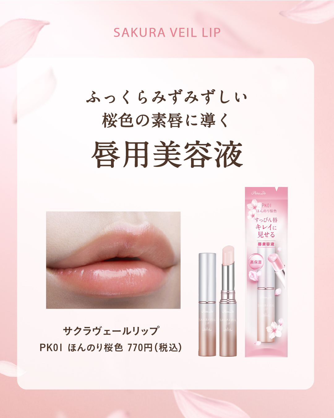 ParaDo(パラドゥ)サクラヴェールリップPK01ほんのり桜色唇用美容液『ふっくらみずみずしい🌸桜色の素唇に導く』①透明感ある唇に→保湿成分<桜(ソメイヨシノ)エキス>を配合 潤いを与えて、くすみ(※乾燥による)の 気にならない透明感のある...