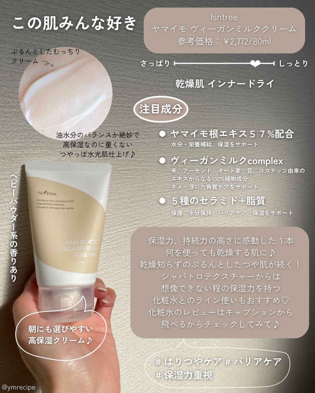 | テクスチャーはふわっとしたクリームで肌に馴染みやすくベタつきはなし 本当に使いやすいクリームです✨ | 詳細を見る | ||