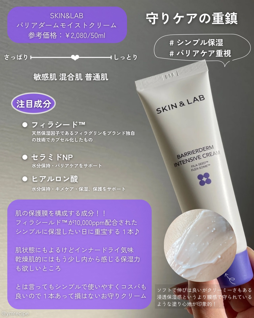 SKIN&LAB バリアダームモイストクリーム | 2,080円 |