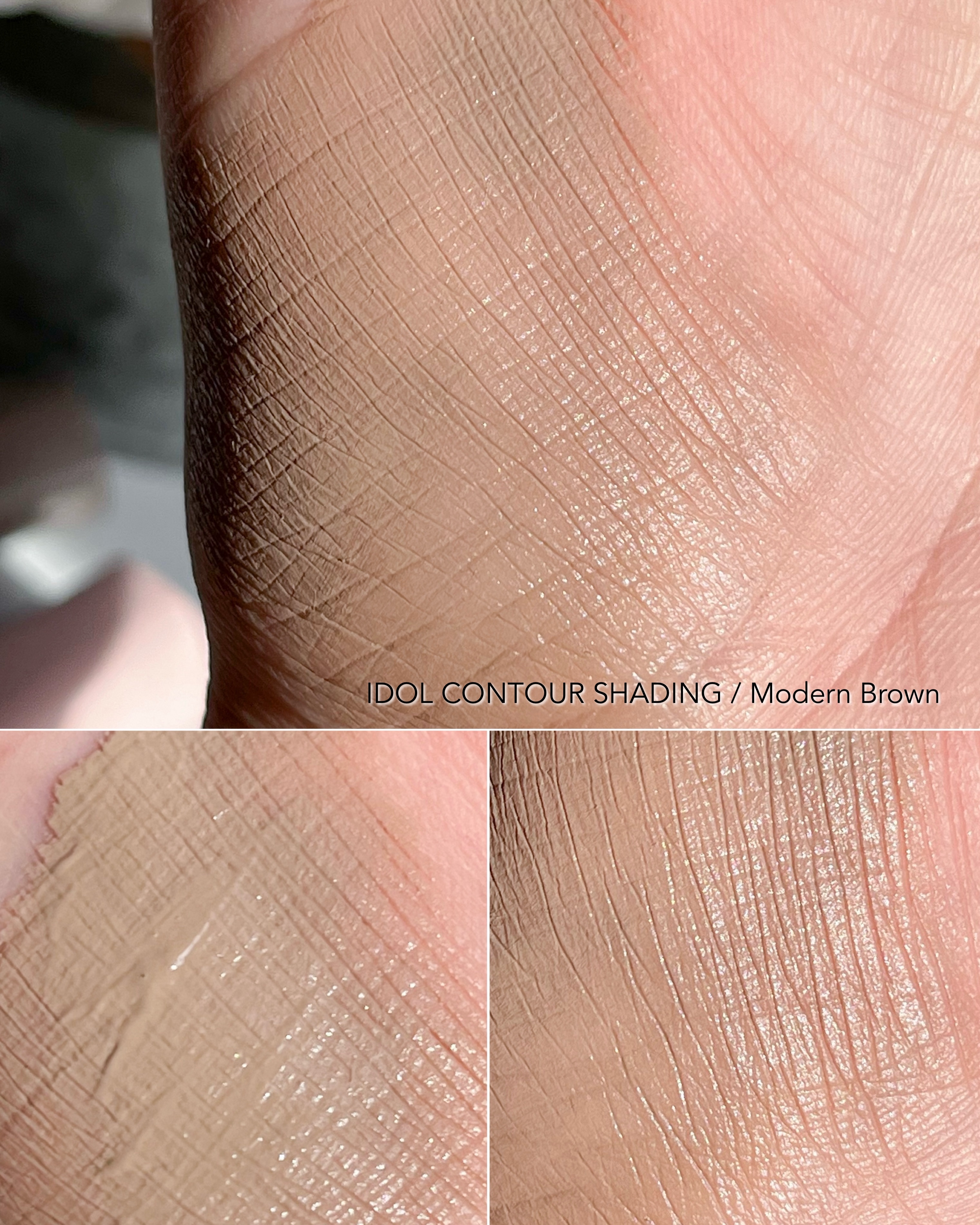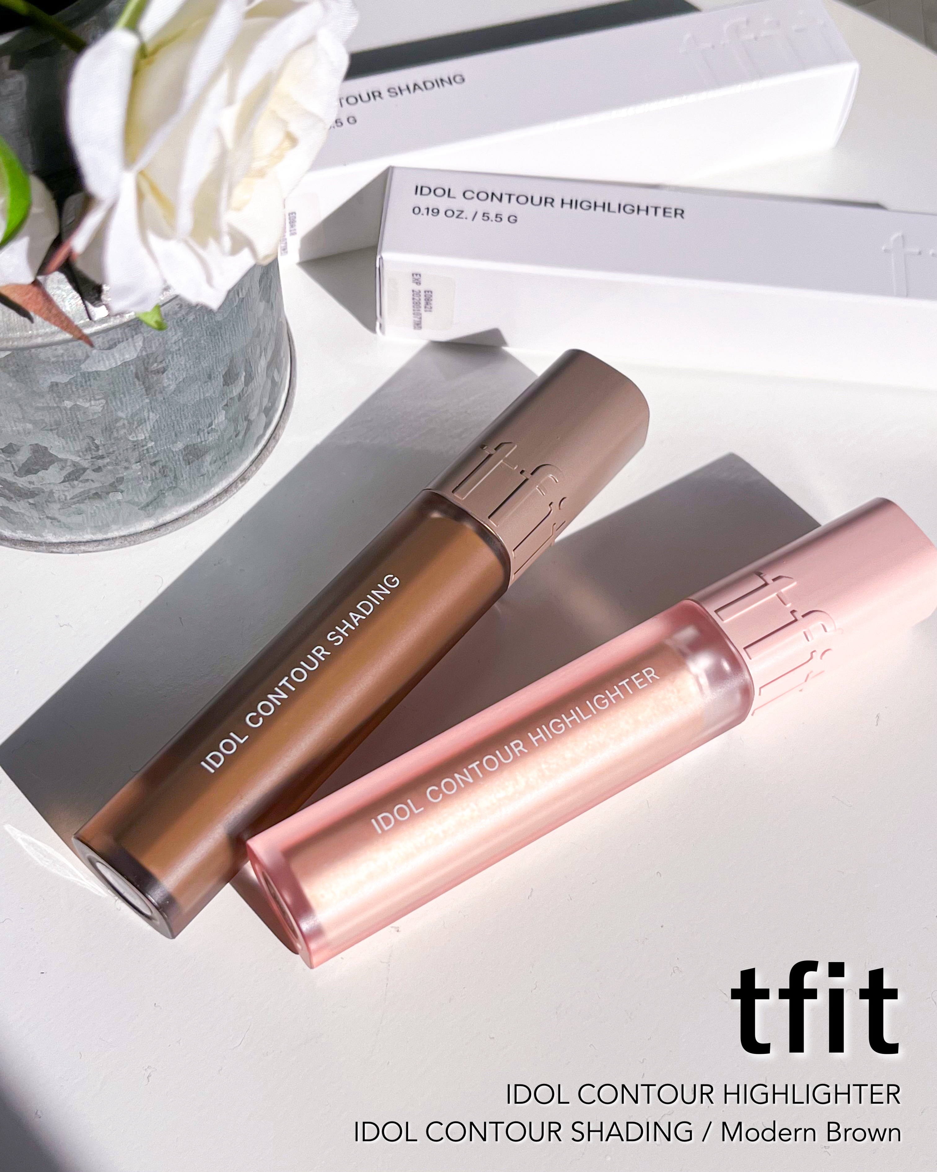 自然な陰影メイクができるコスメ🌸TFITのアイドルコントゥアハイライターシャインベージュとアイドルコントゥアシェーディングモダンブラウンをスウォッチ✨️TFITアイドルコントゥアハイライターシャインベージュ/アイドルコントゥアシェーディングモ...