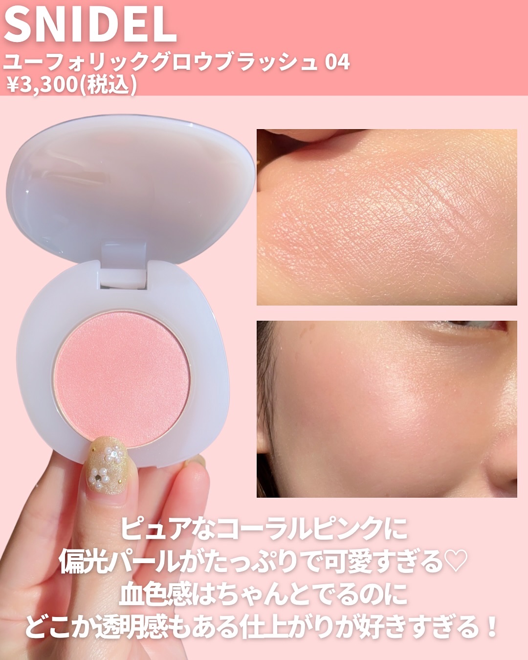 | チークランキング第1位 | ちゃんと発色してくれるのに やりすぎ感のないほわっと自然な血色で、 繊細パールがツヤんと煌めく🍑💫 | 詳細を見る | |