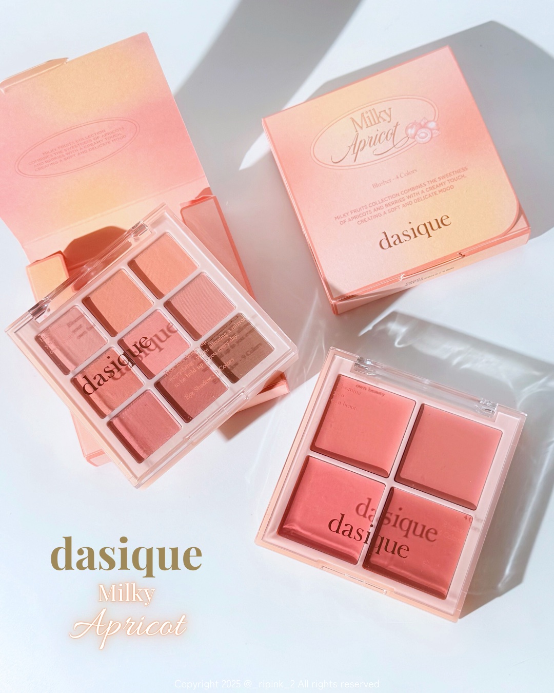 dasique新作ミルキーフルーツコレクション🥛イチゴとあんず(アプリコット)をモチーフにイエベとブルベに最も似合うカラーを厳選したバリエーション🍓なめらかなミルクにぽちゃんと落ちたフルーツの甘いカラー感をほのかに加えたシャドウパレット...