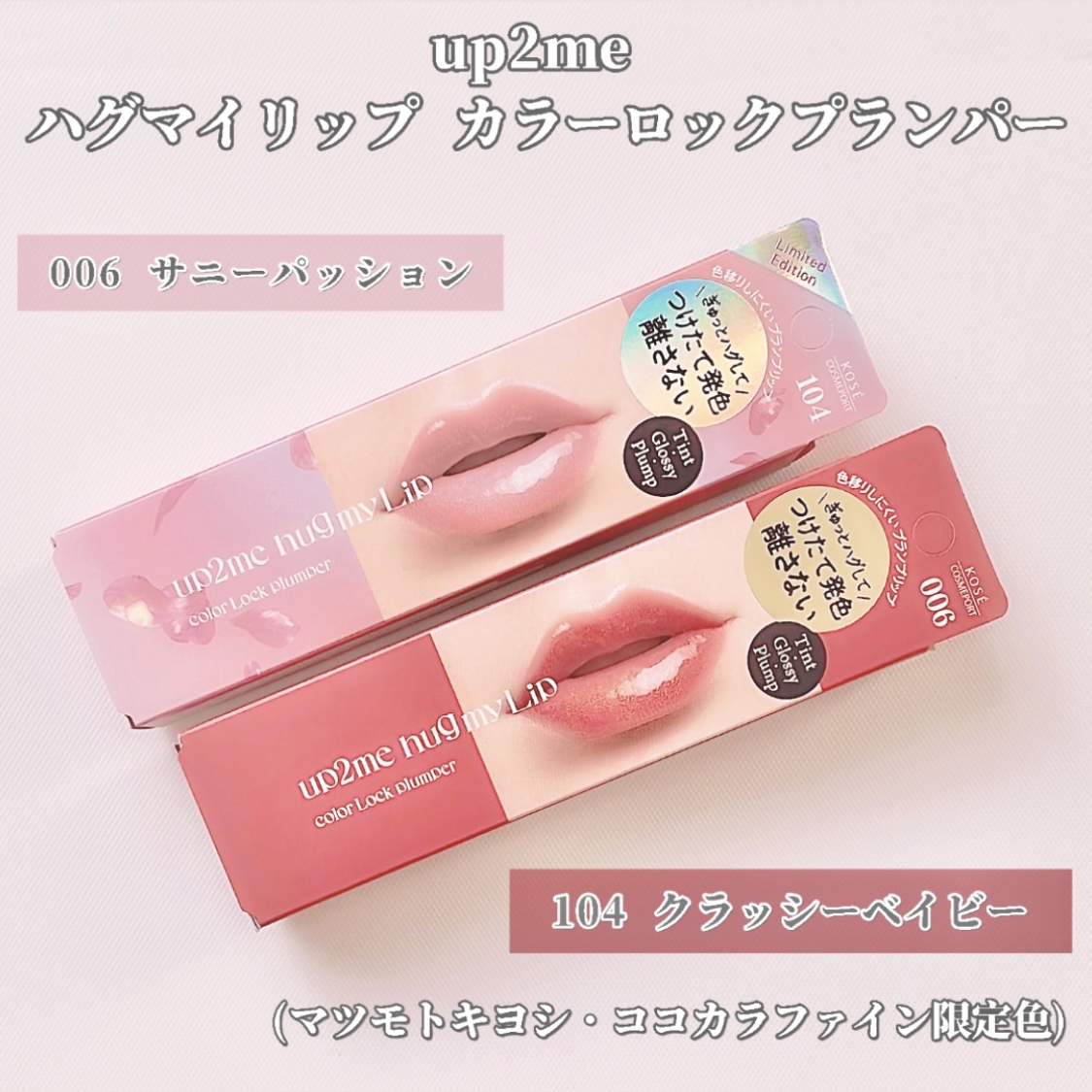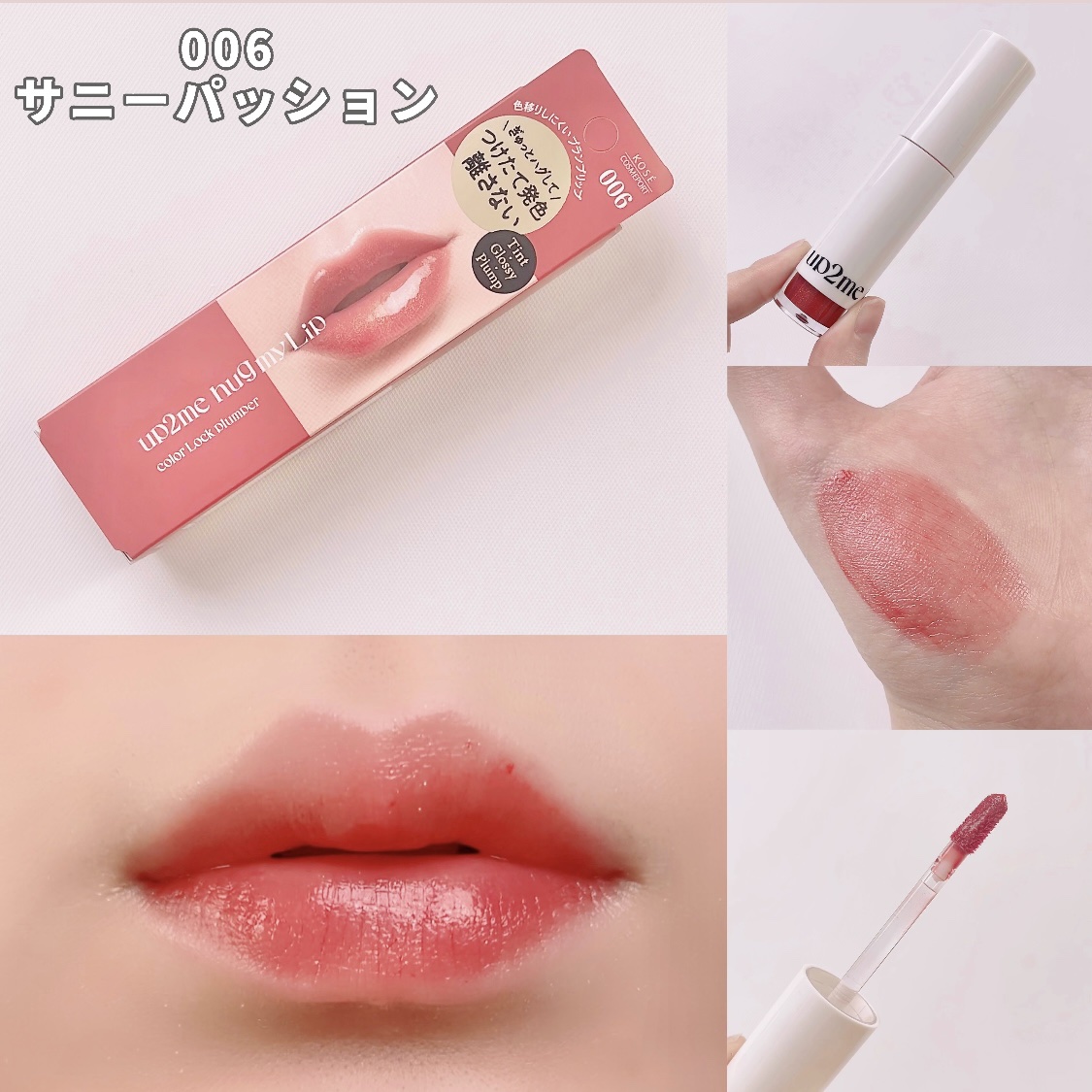 #PR#hugmylip#ハグマイリップ#up2me#ティントリップup2meハグマイリップから新色&限定色登場!色もち×ぷっくり唇*が叶うリップ。*メイク効果による▷アップトゥーミー ハグマイリップ カラーロックプランパー 006サニーパッ...