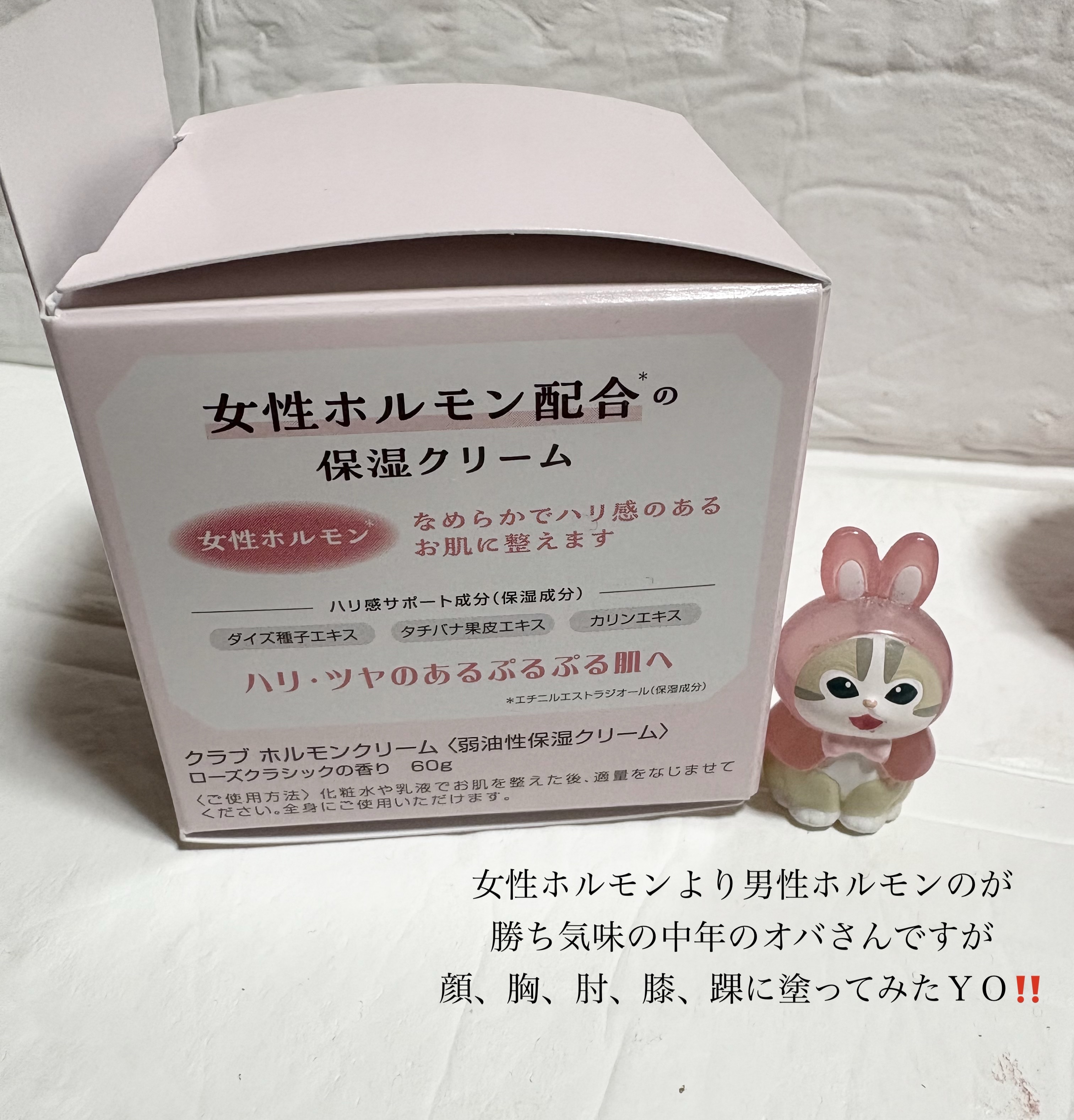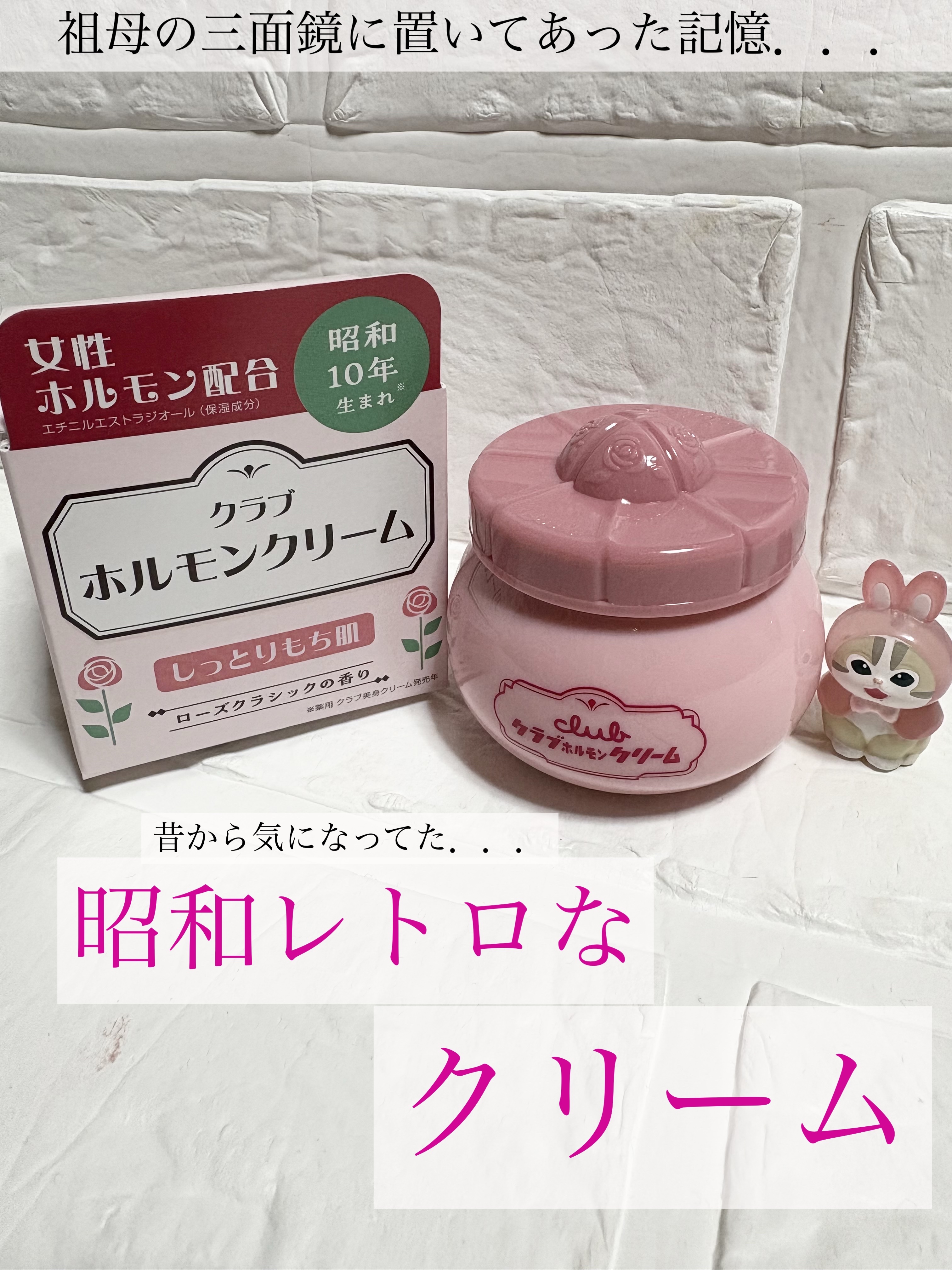 - 香り・保湿感をリニューアル!より使いやすい使用感に。 クラブホルモンクリームはその名の通り、女性ホルモン(エチニルエストラジオール:保湿成分)を配合した弱油性保湿クリームです。 さっぱりとした感触で肌あれを防ぎ、ハリのある生き生きとした肌印象に導きます。