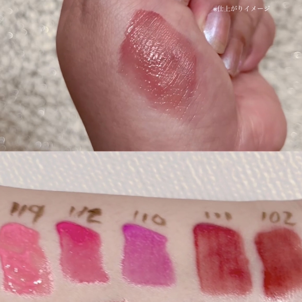 - <101 ジョイフル> 水、リンゴ酸ジイソステアリル、ダイマージリノール酸(フィトステリル/イソステアリル/セチル/ステアリル/ベヘニル)、ジイソステアリン酸ダイマージリノレイル、ノナイソステアリン酸ポリグリセリル-10、オクチルドデカノール、ビスジグリセリルポリアシルアジペート-2、水添ポリイソブテン、セチルPEG/PPG-10/1ジメチコン、ポリソルベート60(小麦由来)、イソステアリン酸ソルビタン(小麦由来)、1,2-ヘキサンジオール、グリセリン、ベヘニルアルコール、(アクリル酸/MA)コポリマーNa、ペンチレングリコール、BG、ポリアクリレート-13、トロメタミン、(アクリレーツ/アクリル酸アルキ ル(C10-30 )クロスポリマー、エチルヘキシルグリセリン、ポリイソブテン、(アクリル酸ヒドロキシエチル/アクリロイルジメチルタウリンNa)コポリマー、スクワラン、デヒドロ酢酸、ステビオシド、香料、フィチン酸、カプリリルグリコール、ジメチコン、水添ロジン酸メチル、水酸化Al、ポリソルベート20(小麦由来)、トコフェロール、ライム果汁、キイチゴ果汁、レモン果汁、マンゴー果汁、フラガリアチロエンシス果汁、アンズ果汁、オレンジ果汁、グレープフルーツ液汁、キウイ果汁、パパイア果汁、[+/-]酸化チタン、黄4、黄5、赤 104(1)、赤227、青1 <102 デューイ> 水、リンゴ酸ジイソステアリル、ダイマージリノール酸(フィトステリル/イソステアリル/セチル/ステアリル/ベヘニル)、ジイソステアリン酸ダイマージリノレイル、ノナイソステアリン酸ポリグリセリル-10、オクチルドデカノール、ビスジグリセリルポリアシルアジペート-2、水添ポリイソブテン、セチルPEG/PPG-10/1ジメチコン、ポリソルベート60(小麦由来)、イソステアリン酸ソルビタン(小麦由来)、1,2-ヘキサンジオール、グリセリン、ベヘニルアルコール、(アクリル酸/MA)コポリマーNa、ペンチレングリコール、BG、ポリアクリレート-13、トロメタミン、(アクリレーツ/アクリル酸アルキル(C10-30))クロスポリマー、エチルヘキシルグリセリン、ポリイソブテン、(アクリル酸ヒドロキシエチル/アクリロイルジメチルタウリンNa)コポリマー、スクワラン、デヒドロ酢酸、ステビオシド、香料、フィチン酸、ジメチコン、水添ロジン酸メチル、水酸化Al、カプリリルグリコール、ポリソルベート20(小麦由来)、トコフェロール、ライム果汁、キイチゴ果汁、レモン果汁、マンゴー果汁、フラガリアチロエンシス果汁、アンズ果汁、オレンジ果汁、グレープフルーツ液汁、キウイ果汁、パパイア果汁、酸化チタン、赤227、黄5、黄4、青1 <103 ハミング> 水、リンゴ酸ジイソステアリル、ダイマージリノール酸(フィトステリル/イソステアリル/セチル/ステアリル/ベヘニル)、ジイソステアリン酸ダイマージリノレイル、ノナイソステアリン酸ポリグリセリル-10、オクチルドデカノール、ビスジグリセリルポリアシルアジペート-2、水添ポリイソブテン、セチルPEG/PPG-10/1ジメチコン、ポリソルベート60(小麦由来)、イソステアリン酸ソルビタン(小麦由来)、1,2-ヘキサンジオール、グリセリン、ベヘニルアルコール、(アクリル酸/MA)コポリマーNa、ペンチレングリコール、BG、ポリアクリレート-13、トロメタミン、(アクリレーツ/アクリル酸アルキル(C10-30))クロスポリマー、エチルヘキシルグリセリン、ポリイソブテン、(アクリル酸ヒドロキシエチル/アクリロイルジメチルタウリンNa)コポリマー、スクワラン、デヒドロ酢酸、ステビオシド、香料、フィチン酸、ジメチコン、水添ロジン酸メチル、水酸化Al、カプリリルグリコール、ポリソルベート20(小麦由来)、トコフェロール、ライム果汁、キイチゴ果汁、レモン果汁、マンゴー果汁、フラガリアチロエンシス果汁、アンズ果汁、オレンジ果汁、グレープフルーツ液汁、キウイ果汁、パパイア果汁、酸化チタン、黄5、赤227、青1 <104 チェリー> 水、リンゴ酸ジイソステアリル、ダイマージリノール酸(フィトステリル/イソステアリル/セチル/ステアリル/ベヘニル)、ジイソステアリン酸ダイマージリノレイル、ノナイソステアリン酸ポリグリセリル-10、オクチルドデカノール、ビスジグリセリルポリアシルアジペート-2、水添ポリイソブテン、セチルPEG/PPG- 10/1ジメチコン、イソステアリン酸ソルビタン(小麦由来)、ポリソルベート60(小麦由来)、1,2-ヘキサンジオール、グリセリン、ベヘニルアルコール、(アクリル酸/MA)コポリマーNa、ペンチレングリコール、BG、ポリアクリレート-13、ト ロメタミン、(アクリレーツ/アクリル酸ア ルキル(C10-30))クロスポリマー、エチルヘキシルグリセリン、ポリイソブテ ン、(アクリル酸ヒドロキシエチル/アクリ ロイルジメチルタウリンNa)コポリマー、スクワラン、デヒドロ酢酸、ステビオシド、香料、カプリリルグリコール、ポリソルベー ト20(小麦由来)、トコフェロール、ライム果汁、キイチゴ果汁、レモン果汁、マンゴー 果汁、フラガリアチロエンシス果汁、アンズ 果汁、オレンジ果汁、グレープフルーツ液 汁、キウ