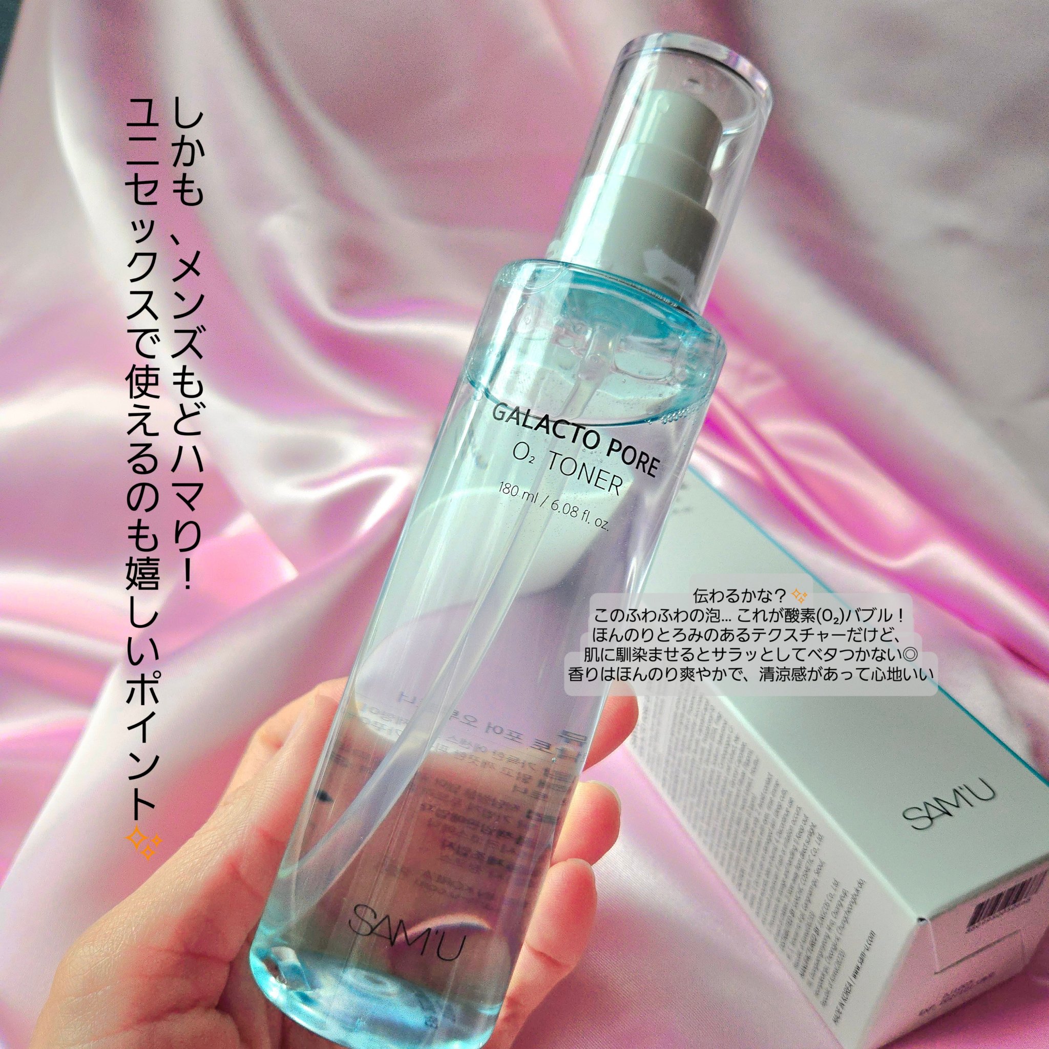 SAM'U/サミュさまよりいただき、ガラクトポアオーツトナーをお試ししてみました😌◆ガラクトポアオーツトナー使用する前に振ると現れる酸素(O₂)バブルで毛穴の奥までスッキリ!刺激的な炭酸ではなく、振ると発生する酸素を含んだエッセンスバブル🫧と...