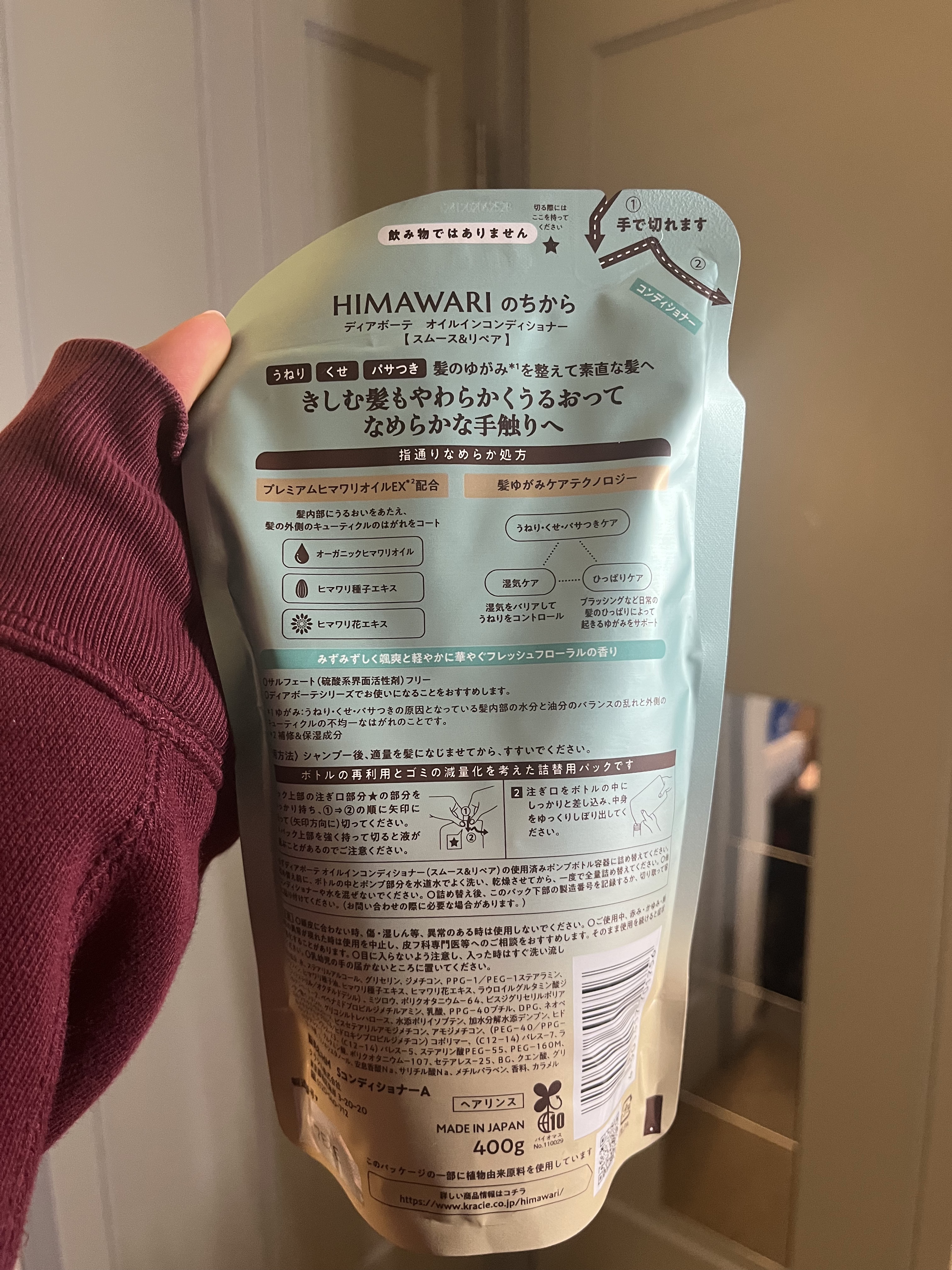 - <シャンプー 500g> 水、ラウロイルサルコシンTEA、パーム核脂肪酸アミドプロピルベタイン、コカミドメチルMEA、ココイルグルタミン酸TEA、ココイルメチルタウリンNa、ヤシ油脂肪酸PEG-7グリセリル、ヒマワリ種子油、ヒマワリ葉/茎エキス、ポリクオタニウム-64、ヒマワリ種子エキス、ヒマワリ花エキス、ポリクオタニウム-7、クエン酸、セテアレス-60ミリスチルグリコール、グアーヒドロキシプロピルトリモニウムクロリド、ポリクオタニウム-10、ココイルグルタミン酸2Na、ポリクオタニウム-49、エタノール、ココイルトレオニンNa、ココイルグルタミン酸Na、塩化Na、BG、グリセリン、EDTA-2Na、安息香酸Na、香料、カラメル <コンディショナー 500g> 水、ステアリルアルコール、グリセリン、ジメチコン、PPG-1/PEG-1ステアラミン、パラフィン、ヒマワリ種子油、ヒマワリ葉/茎エキス、ポリクオタニウム-64、ヒマワリ種子エキス、ヒマワリ花エキス、ヒマワリ芽エキス、ミツロウ、ネオペンタン酸イソデシル、ハチミツ、ポリクオタニウム-107、ビスジグリセリルポリアシルアジペート-2、ベヘナミドプロピルジメチルアミン、乳酸、DPG、グリコシルトレハロース、フェニルトリメチコン、加水分解水添デンプン、アモジメチコン、ヒドロキシエチルセルロース、(PEG-40/PPG-8メチルアミノプロピル/ヒドロキシプロピルジメチコン)コポリマー、(C12-14)パレス-7、(ジビニルジメチコン/ジメチコン)コポリマー、ラウレス-4、ラウレス-23、(C12-14)パレス-5、ステアリン酸PEG-55、PEG-160M、グルタミン酸、BG、エタノール、(C12,13)パレス-23、クエン酸、(C12,13)パレス-3、フェノキシエタノール、安息香酸Na、サリチル酸Na、メチルパラベン、香料、カラメル <シャンプー詰替用> 水、ラウロイルサルコシンTEA、パーム核脂肪酸アミドプロピルベタイン、コカミドメチルMEA、ココイルグルタミン酸TEA、ココイルメチルタウリンNa、ヤシ油脂肪酸PEG-7グリセリル、ヒマワリ種子油、ヒマワリ葉/茎エキス、ポリクオタニウム-64、ヒマワリ種子エキス、ヒマワリ花エキス、ポリクオタニウム-7、クエン酸、セテアレス-60ミリスチルグリコール、グアーヒドロキシプロピルトリモニウムクロリド、ポリクオタニウム-10、ココイルグルタミン酸2Na、ポリクオタニウム-49、エタノール、ココイルトレオニンNa、ココイルグルタミン酸Na、塩化Na、BG、グリセリン、EDTA-2Na、安息香酸Na、香料、カラメル <コンディショナー詰替用> 水、ステアリルアルコール、グリセリン、ジメチコン、PPG-1/PEG-1ステアラミン、パラフィン、ヒマワリ種子油、ヒマワリ葉/茎エキス、ポリクオタニウム-64、ヒマワリ種子エキス、ヒマワリ花エキス、ヒマワリ芽エキス、ミツロウ、ネオペンタン酸イソデシル、ハチミツ、ポリクオタニウム-107、ビスジグリセリルポリアシルアジペート-2、ベヘナミドプロピルジメチルアミン、乳酸、DPG、グリコシルトレハロース、フェニルトリメチコン、加水分解水添デンプン、アモジメチコン、ヒドロキシエチルセルロース、(PEG-40/PPG-8メチルアミノプロピル/ヒドロキシプロピルジメチコン)コポリマー、(C12-14)パレス-7、(ジビニルジメチコン/ジメチコン)コポリマー、ラウレス-4、ラウレス-23、(C12-14)パレス-5、ステアリン酸PEG-55、PEG-160M、グルタミン酸、BG、エタノール、(C12,13)パレス-23、クエン酸、(C12,13)パレス-3、フェノキシエタノール、安息香酸Na、サリチル酸Na、メチルパラベン、香料、カラメル <シャンプー詰替用(430ml)> 水、ラウロイルサルコシンTEA、パーム核脂肪酸アミドプロピルベタイン、コカミドメチルMEA、ココイルグルタミン酸TEA、ココイルメチルタウリンNa、ヤシ油脂肪酸PEG-7グリセリル、ヒマワリ種子油、ヒマワリ種子エキス、ヒマワリ花エキス、ポリクオタニウム-7、ポリクオタニウム-64、クエン酸、セテアレス-60ミリスチルグリコール、グアーヒドロキシプロピルトリモニウムクロリド、ポリクオタニウム-10、ポリクオタニウム-49、エタノール、塩化Na、グリセリン、BG、EDTA-2Na、安息香酸Na、香料、カラメル <コンディショナー詰替用 増量(430g)> 水、ステアリルアルコール、グリセリン、ジメチコン、PPG-1/PEG-1ステアラミン、パラフィン、ヒマワリ種子油、ヒマワリ葉/茎エキス、ポリクオタニウム-64、ヒマワリ種子エキス、ヒマワリ花エキス、ヒマワリ芽エキス、ミツロウ、ネオペンタン酸イソデシル、ハチミツ、ポリクオタニウム-107、ビスジグリセリルポリアシルアジペート-2、ベヘナミドプロピルジメチルアミン、乳酸、DPG、グリコシルトレハロース、フェニルトリメチコン、加水分解水添デンプン、アモジメチコン、ヒドロキシエチルセルロース、(PEG-40/PPG-8メチルアミノプロピル/ヒドロキシプロピルジメチコン)コポリマー、(C12-14)パレス-7、(ジビニルジメチコン/ジメチコン)コポリマー、ラウレス-4、ラウレス-23、(C12-14)パレス-5、ステアリン酸PEG-55、PEG-160M、グルタミン酸、BG、エタノール、(C12,13)パレス-23、クエン酸、(C12,13)パレス-3、フェノキシエタノール、