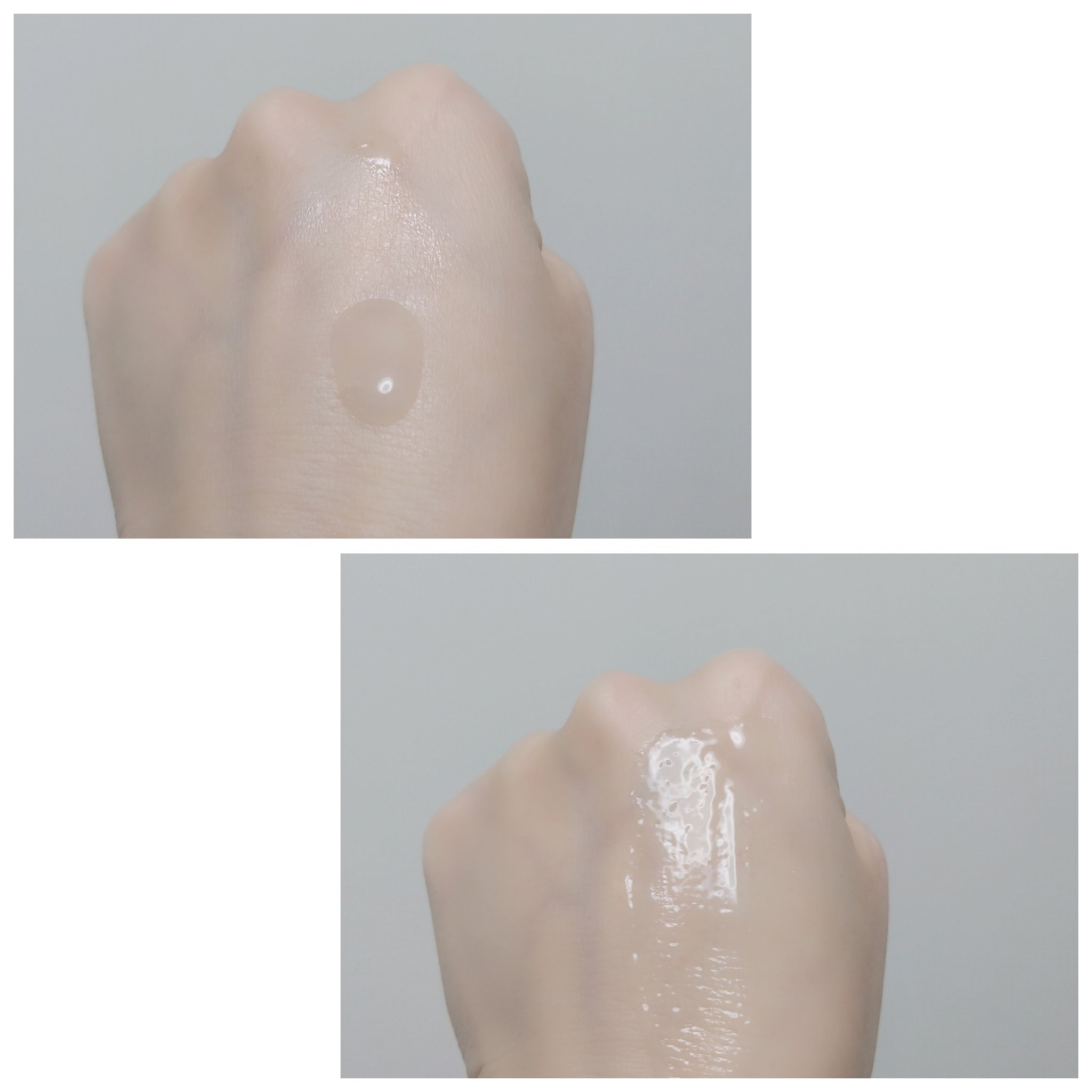 手に取ってみるととろみのあるテクスチャー なんでも、資生堂サロン&スパ監修で、ご褒美エステ気分が高まる使い心地を追求したこだわりのテクスチャーなんだそう とろみはあるけれど少量で伸びもよく、使いやすいです。 吸いつくような使い心地 しっとりするけれどべたつかず、エアコンシーズンのこれからの時期にも良さそうです