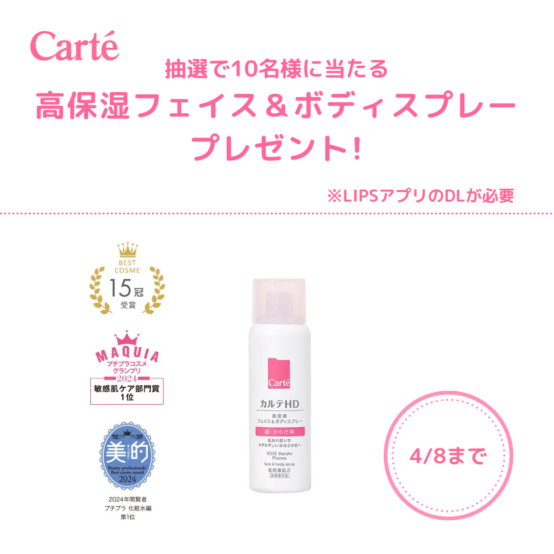 - 【全身用高保湿スプレー】 コーセーとマルホの合弁会社コーセーマルホファーマから発売された「カルテHD」。 エアゾールタイプの化粧水としては「初めて※1」ヘパリン類似物質HD※2を配合した全身用スプレー化粧水です。 配合のヘパリン類似物質HDはマルホから唯一供給を受けた「ヘパリン類似物質HD」を配合。 しっとり感とみずみずしさを叶える極上のミストが、すばやく広がり、全身をみずみずしいうるおいでふわっと包みます。 しっとりうるおうのにべたつかない軽やかな使い心地で、いつでもどこでも手軽な高保湿ケアを実現。 24時間乾燥の隙なし習慣を叶えます。 毎日のお顔のお手入れはもちろん、手の届きにくい背中などのボディケアや 子どもの全身保湿・男性のスキンケアなど幅広い場面で活躍。 うるおい構造(角層ラメラ)を整えて、あれにくい肌にみちびきます。 <販売名:HDフェイスボディSP> ※1 コーセーグループ商品として ※2 保水有効成分ヘパリン類似物質のこと