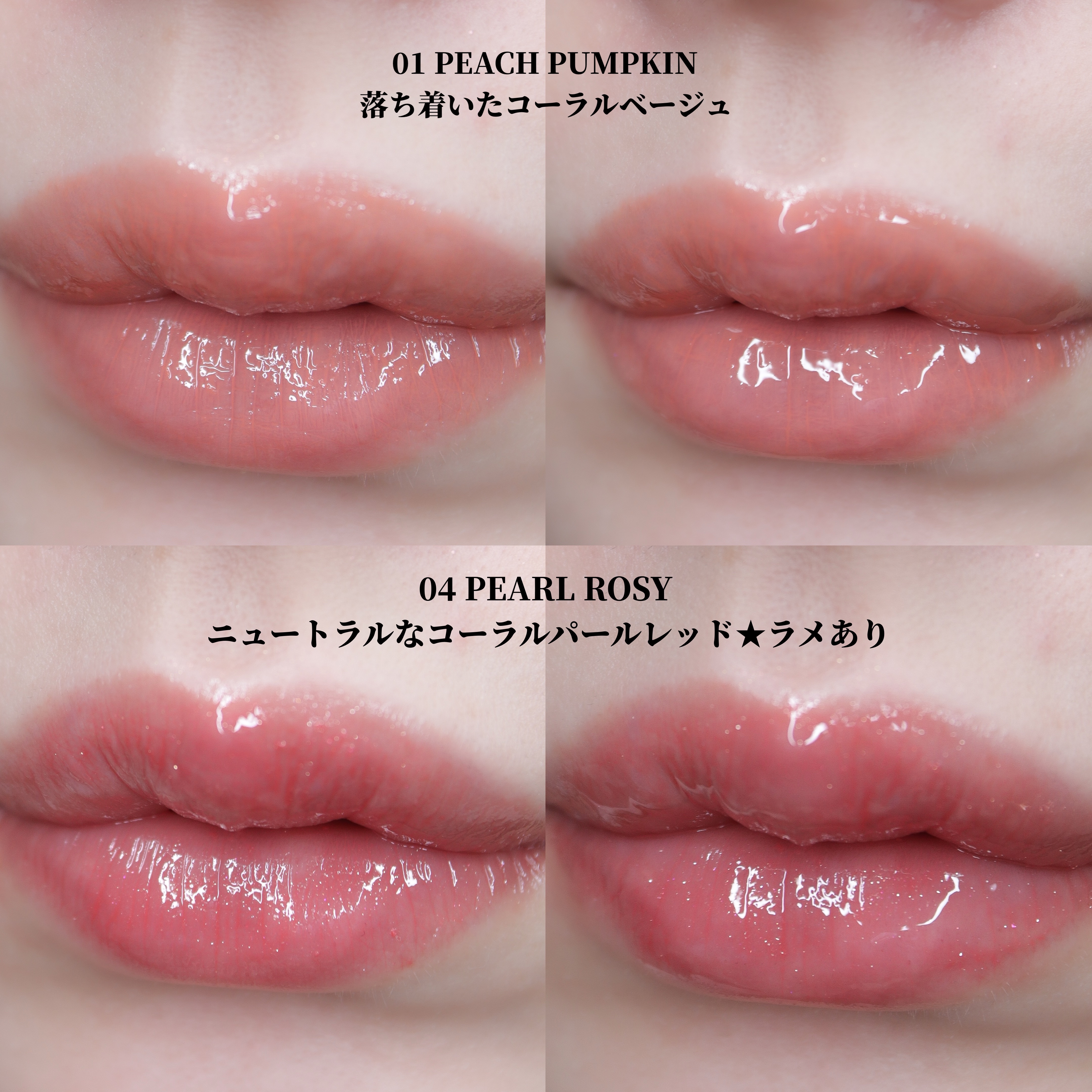 あめ玉のようなツヤ感と厚みのあるテクスチャー🍬 唇をナチュラルにぷっくり見せることができるヌーディーカラーの01〜03。 グロスのような透明感なのに、ティント効果もあっていいとこどりリップ🫶