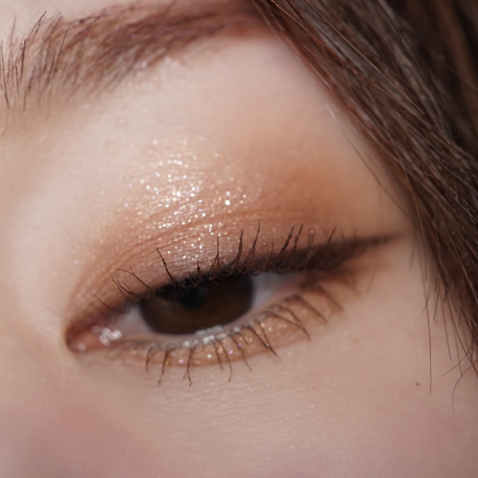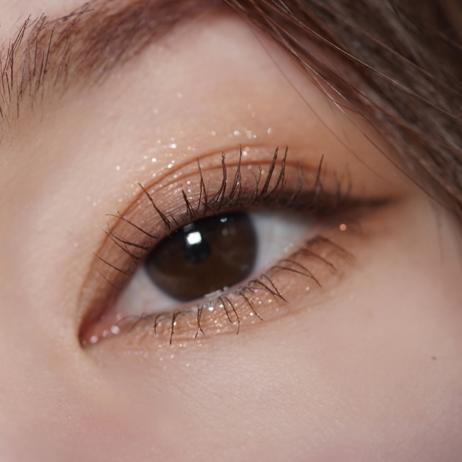 よくパレットのなかで明るいカラーをベースにまぶたに広く塗ることが多いのですが、パール感のあるカラーを避ける🙆♀️! パール感たっぷりの明るいカラーは涙袋に使うぐらい光を集めてぷっくり見せてくれるので、まぶたに広く使うと腫れぼったく見えがち😓 目元を明るくみせてくれたり、次に使うアイシャドウをぼかしやすくしてくれるけど、すっ飛ばしてメインのカラーを塗っちゃう✊🏻❤️🔥 涙袋にはたっぷり塗ってぷっくり見せる🙆♀️💕 シルキースフレアイズのマットタイプはすごく優れているな〜と感じました☺️💗 赤やオレンジなどは、入れすぎると腫れぼったく見えやすいので、見せたいカラーは下まぶた目尻にのせて色をたのしむ♡♡ パール感なしの透けマットだけじゃ物足りない… そう感じさせない華やかなラメが左上に入っているので黒目上と涙袋にのせるとすごく可愛い仕上がりに😍! 厄介な左右差のお陰でマットアイシャドウが好きになりました😌💕