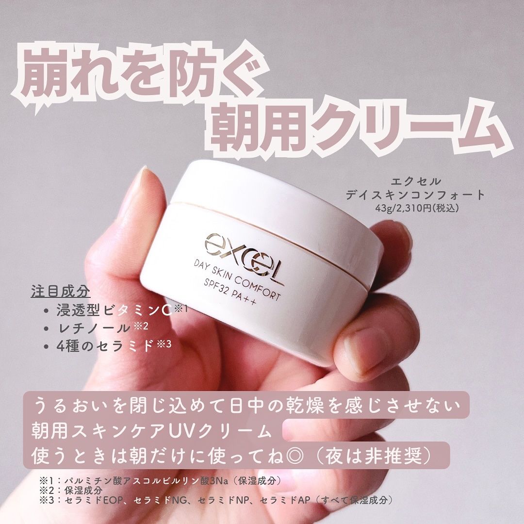 \朝のスキンケアはエクセルにお任せ♡/朝に嬉しい2STEPで完了🌞新商品の朝用スキンローションデイスキンウェイキングと話題の朝用スキンケアUVクリームデイスキンコンフォート使ってみたよ🫧☑︎デイスキンウェイキングメイクに適したお肌の水分と油分...